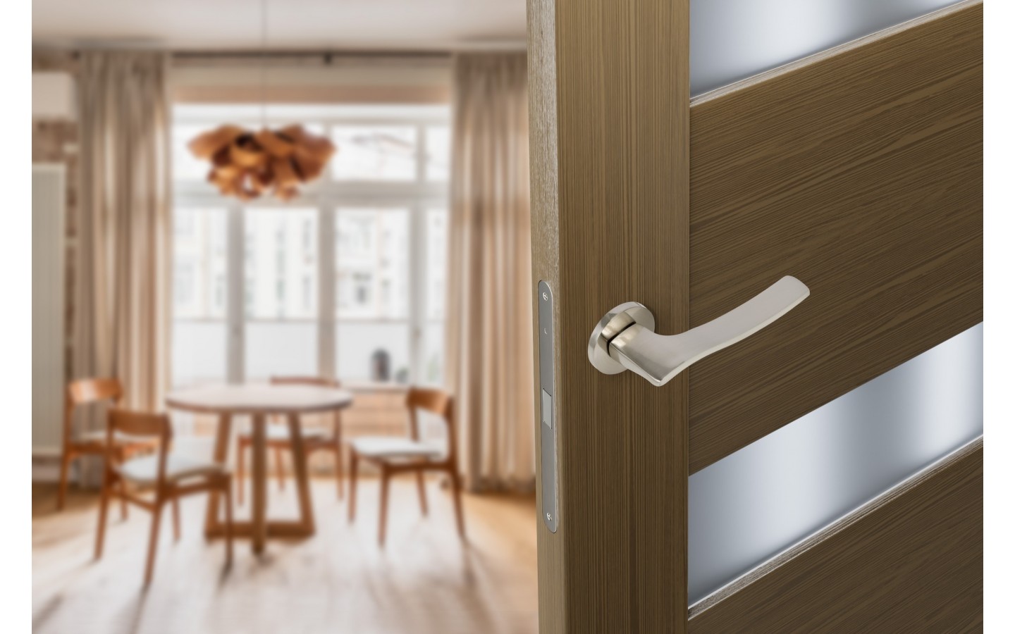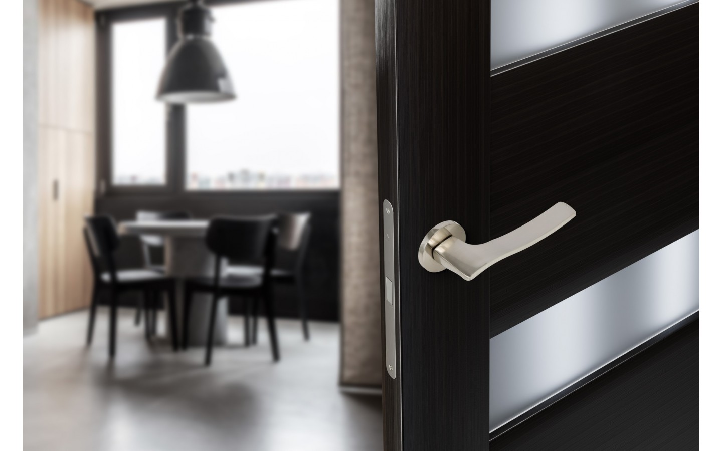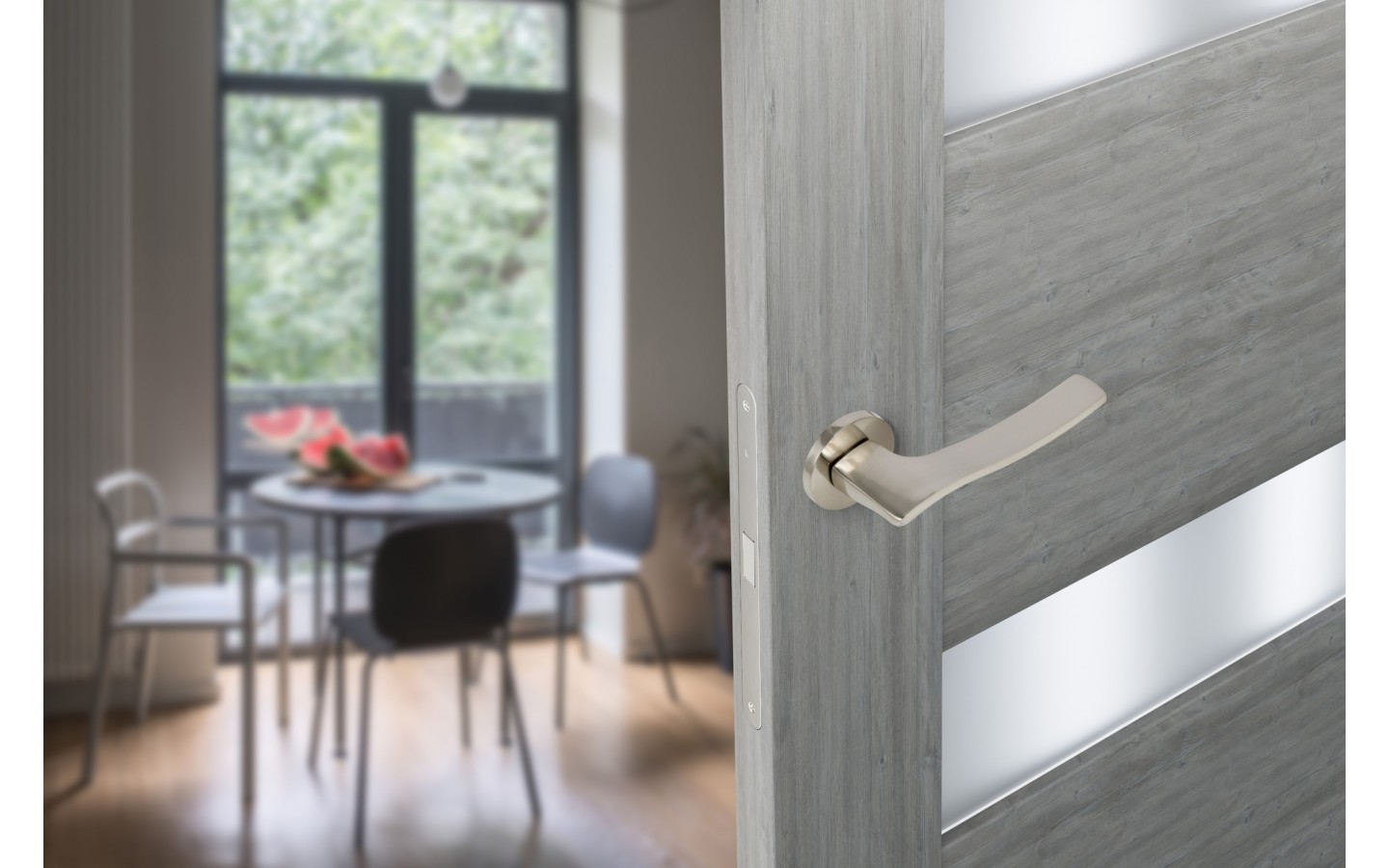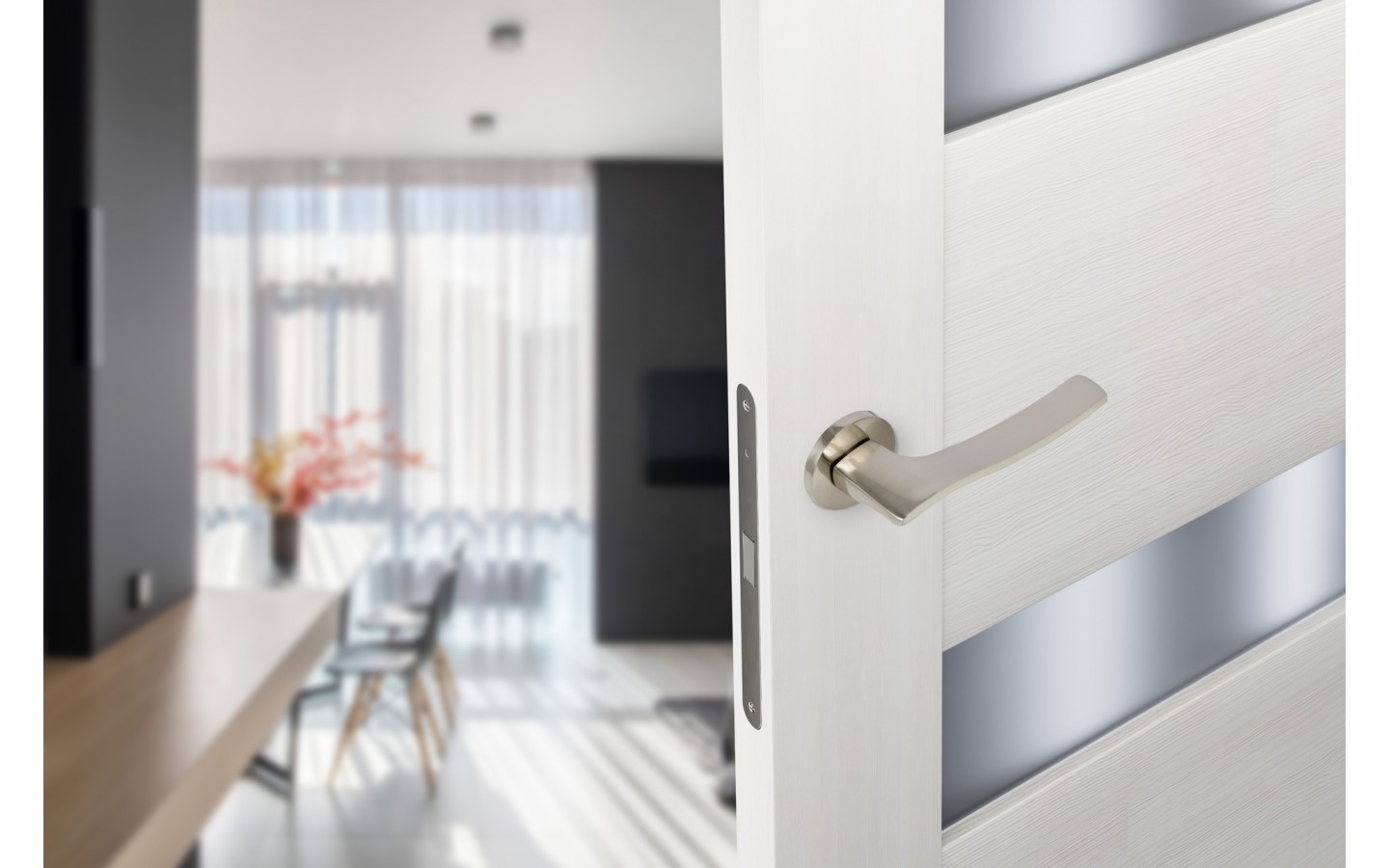 Ручка дверная, с невидимой квадратной розеткой SPUTNIK-SM хром матовый