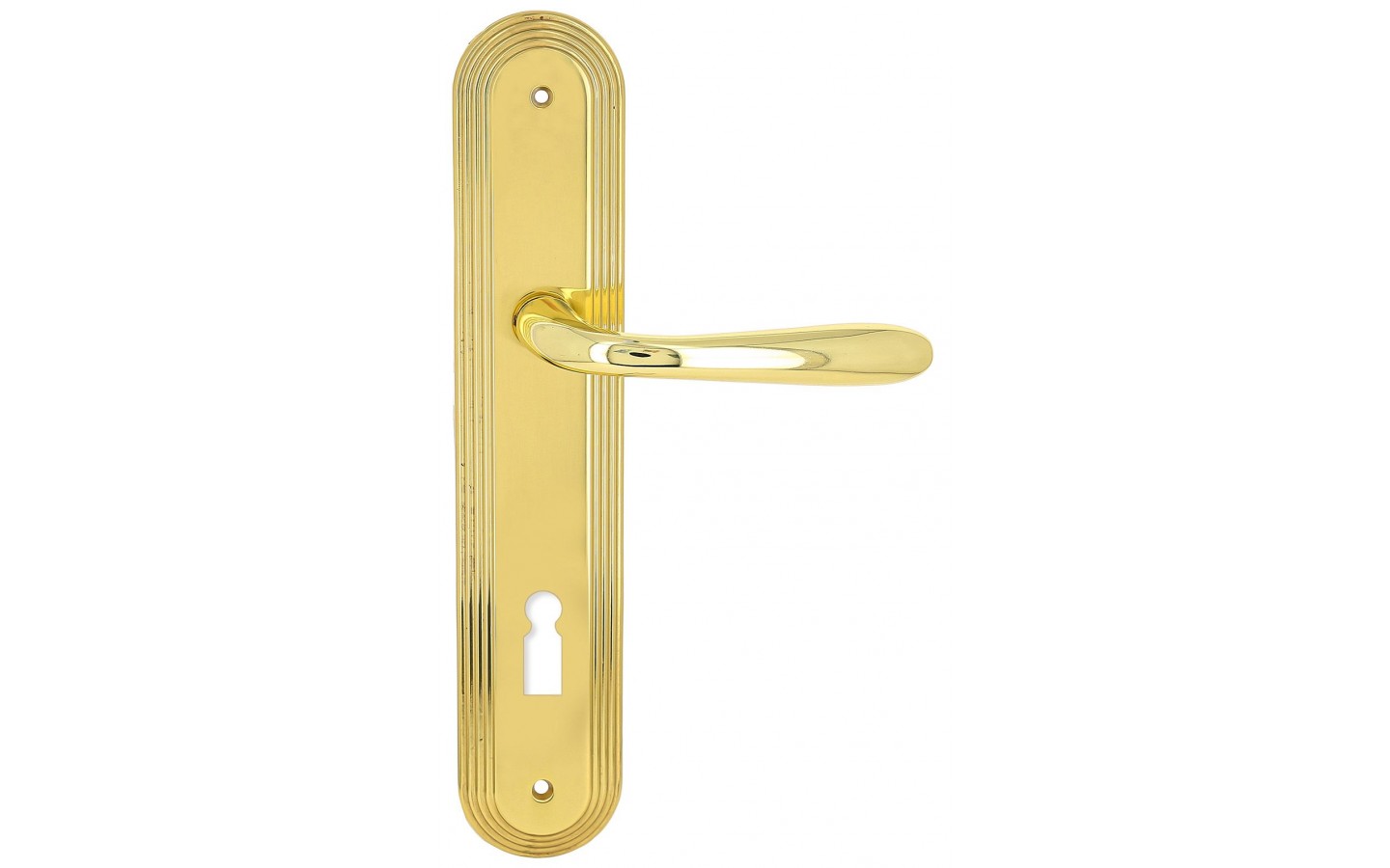 Дверная ручка Extreza ALDO (Альдо) 331 на планке PL05 полированная латунь F01 под кабинетный ключ KEY