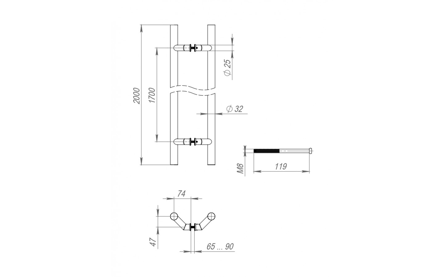 Ручки-скобы изготовлены из нержавейки INOX 304 и предназначены для установки на внутренние и наружные металлические, профильные, деревянные и стеклянные двери, на двери подъездов и технические двери с одной или с двух сторон. Устойчивы к механическим и климатическим нагрузкам. Со штатными винтами могут устанавливаться на двери толщиной от 45 до 90 мм. В комплекте идёт крепеж для установки как обеих скоб на одну дверь, так и по одной штуке на дверь. Соответствует 4 классу по ГОСТ 538-2014. В комплекте поставки 2 шт.