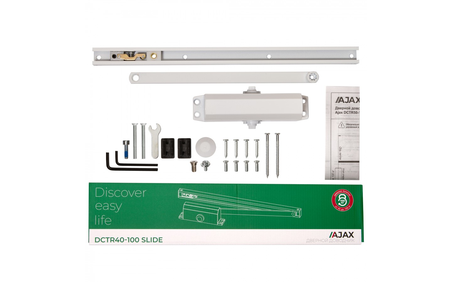Доводчик Ajax (Аякс) дверной DCTR40-100 slide WH белый