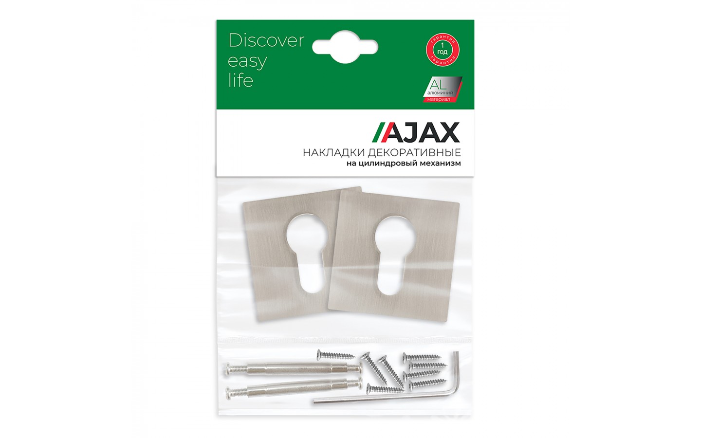 Накладка на цилиндр на тонком квадратном основании Ajax ET серии JS подходит для установки на внутренние входные и межкомнатные двери. Материал основания: алюминий. Гальваническое покрытие прошло тест на устойчивость к коррозии в соляном тумане и соответствует 1 классу ГОСТ. Толщина основания: 6 мм. Цвет: матовый никель.