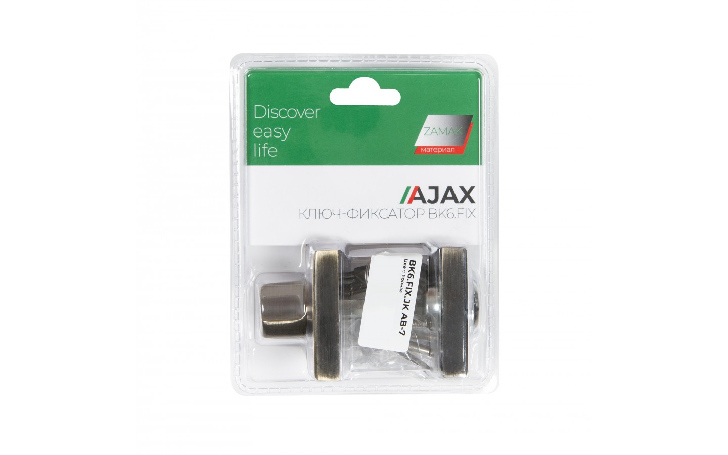 Ручка поворотная с фиксацией ключом Ajax BK6.FIX на квадратном основании серии JK предназначена для установки на межкомнатные двери. Используется вместе с задвижкой, защелкой для двухстороннего закрывания дверей. Запирание с внешней стороны производится на ключ, с внутренней - на поворотную ручку. Обратите внимание! При установке необходимо. чтобы квадрат поворотника был выставлен в среднее положение относительно цилиндрового механизма, то есть имел запас хода в обе стороны 90 градусов. Основной материал изготовления: замак. Материал изготовления цилиндрового механизма - латунь. Гальваническое покрытие прошло тест на устойчивость к коррозии в соляном тумане и соответствует 1 классу ГОСТ. Цвет: бронза. В комплект входят: ручка-поворотная с соединительным квадратом 6x60 мм, цилиндр, 3 перфорированных ключа, комплект крепежа. Упаковка: блистер. Гарантия: 1 год.