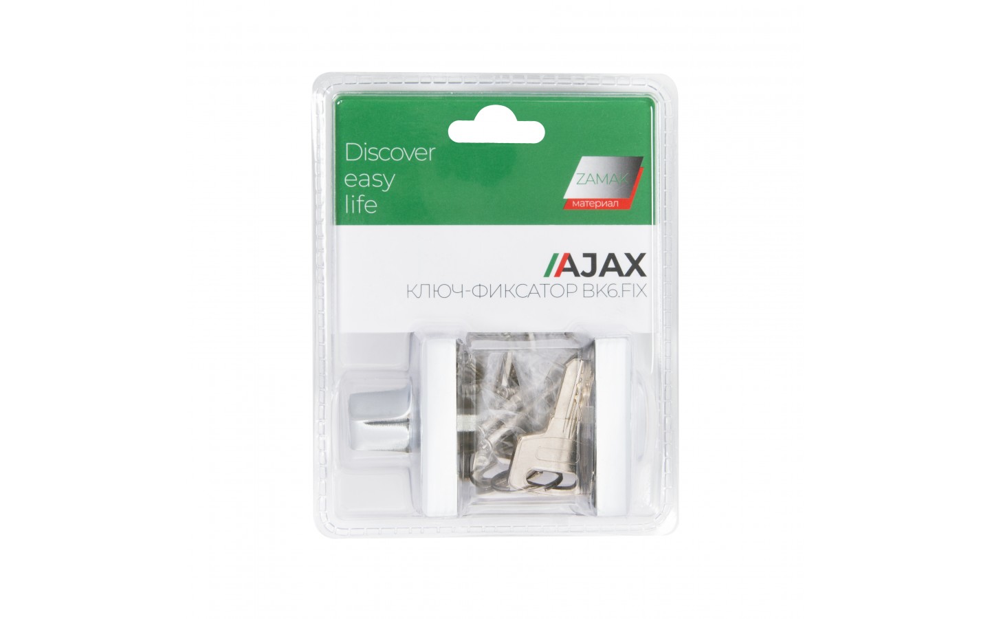 Ручка поворотная с фиксацией ключом Ajax BK6.FIX на квадратном основании серии JK предназначена для установки на межкомнатные двери. Используется вместе с задвижкой, защелкой для двухстороннего закрывания дверей. Запирание с внешней стороны производится на ключ, с внутренней - на поворотную ручку. Обратите внимание! При установке необходимо. чтобы квадрат поворотника был выставлен в среднее положение относительно цилиндрового механизма, то есть имел запас хода в обе стороны 90 градусов. Основной материал изготовления: замак. Материал изготовления цилиндрового механизма - латунь. Гальваническое покрытие прошло тест на устойчивость к коррозии в соляном тумане и соответствует 1 классу ГОСТ. Цвет: хром. В комплект входят: ручка-поворотная с соединительным квадратом 6x60 мм, цилиндр, 3 перфорированных ключа, комплект крепежа. Упаковка: блистер. Гарантия: 1 год.