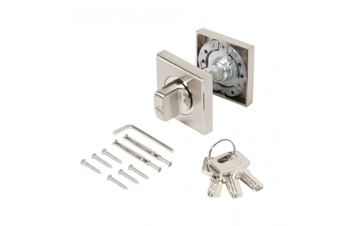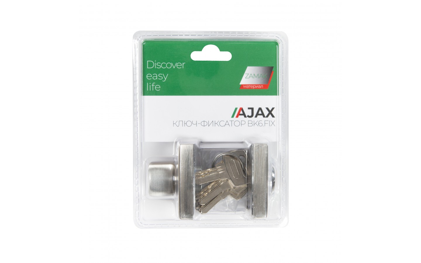 Ручка поворотная с фиксацией ключом Ajax BK6.FIX на квадратном основании серии JK предназначена для установки на межкомнатные двери. Используется вместе с задвижкой, защелкой для двухстороннего закрывания дверей. Запирание с внешней стороны производится на ключ, с внутренней - на поворотную ручку. Обратите внимание! При установке необходимо. чтобы квадрат поворотника был выставлен в среднее положение относительно цилиндрового механизма, то есть имел запас хода в обе стороны 90 градусов. Основной материал изготовления: замак. Материал изготовления цилиндрового механизма - латунь. Гальваническое покрытие прошло тест на устойчивость к коррозии в соляном тумане и соответствует 1 классу ГОСТ. Цвет: мат.никель. В комплект входят: ручка-поворотная с соединительным квадратом 6x60 мм, цилиндр, 3 перфорированных ключа, комплект крепежа. Упаковка: блистер. Гарантия: 1 год.