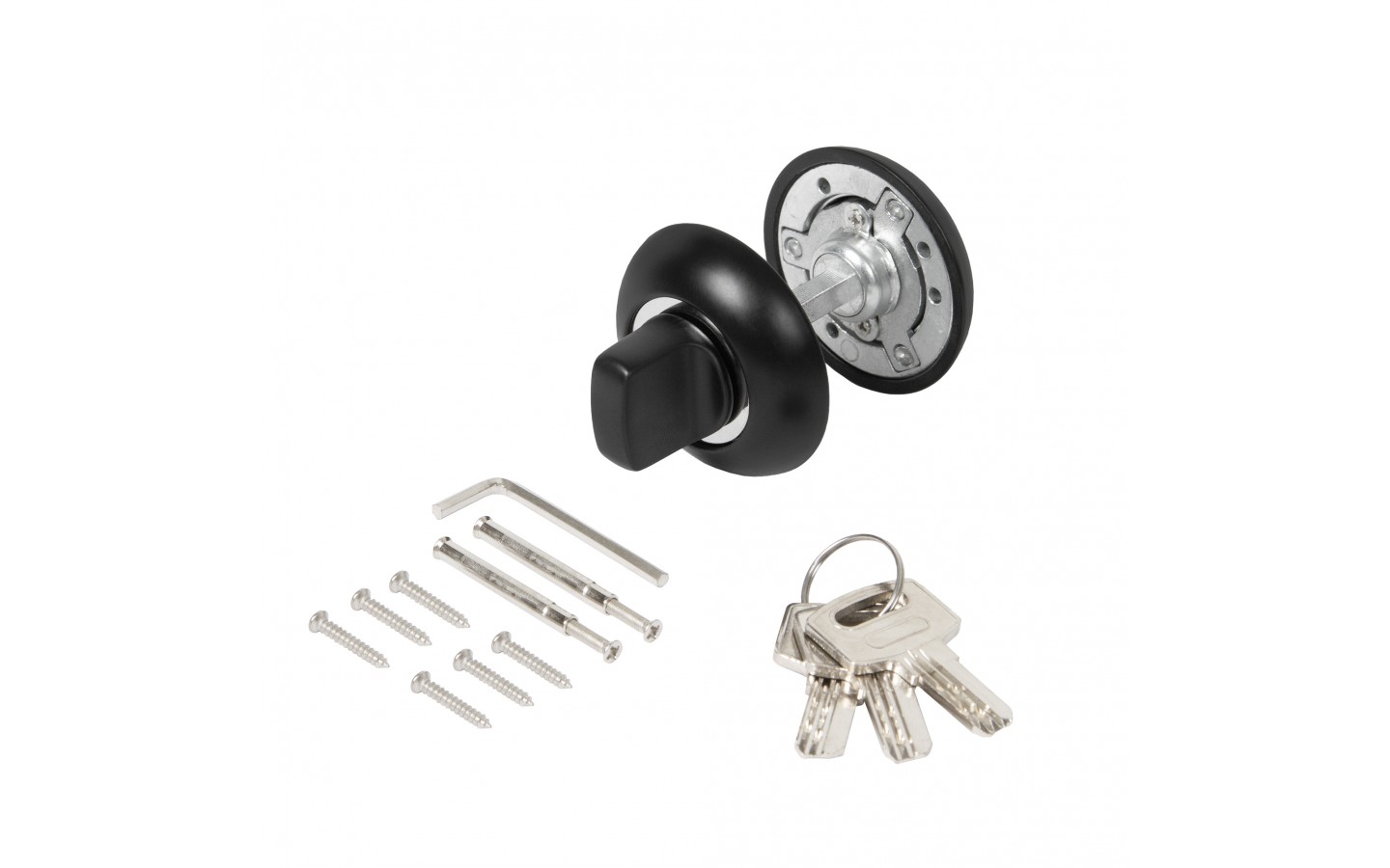Ручка поворотная с фиксацией ключом Ajax BK6.FIX на квадратном основании серии JR предназначена для установки на межкомнатные двери. Используется вместе с задвижкой, защелкой для двухстороннего закрывания дверей. Запирание с внешней стороны производится на ключ, с внутренней - на поворотную ручку. Обратите внимание! При установке необходимо. чтобы квадрат поворотника был выставлен в среднее положение относительно цилиндрового механизма, то есть имел запас хода в обе стороны 90 градусов. Основной материал изготовления: замак. Материал изготовления цилиндрового механизма - латунь. Гальваническое покрытие прошло тест на устойчивость к коррозии в соляном тумане и соответствует 1 классу ГОСТ. Цвет: черный. В комплект входят: ручка-поворотная с соединительным квадратом 6x60 мм, цилиндр, 3 перфорированных ключа, комплект крепежа. Упаковка: блистер. Гарантия: 1 год.