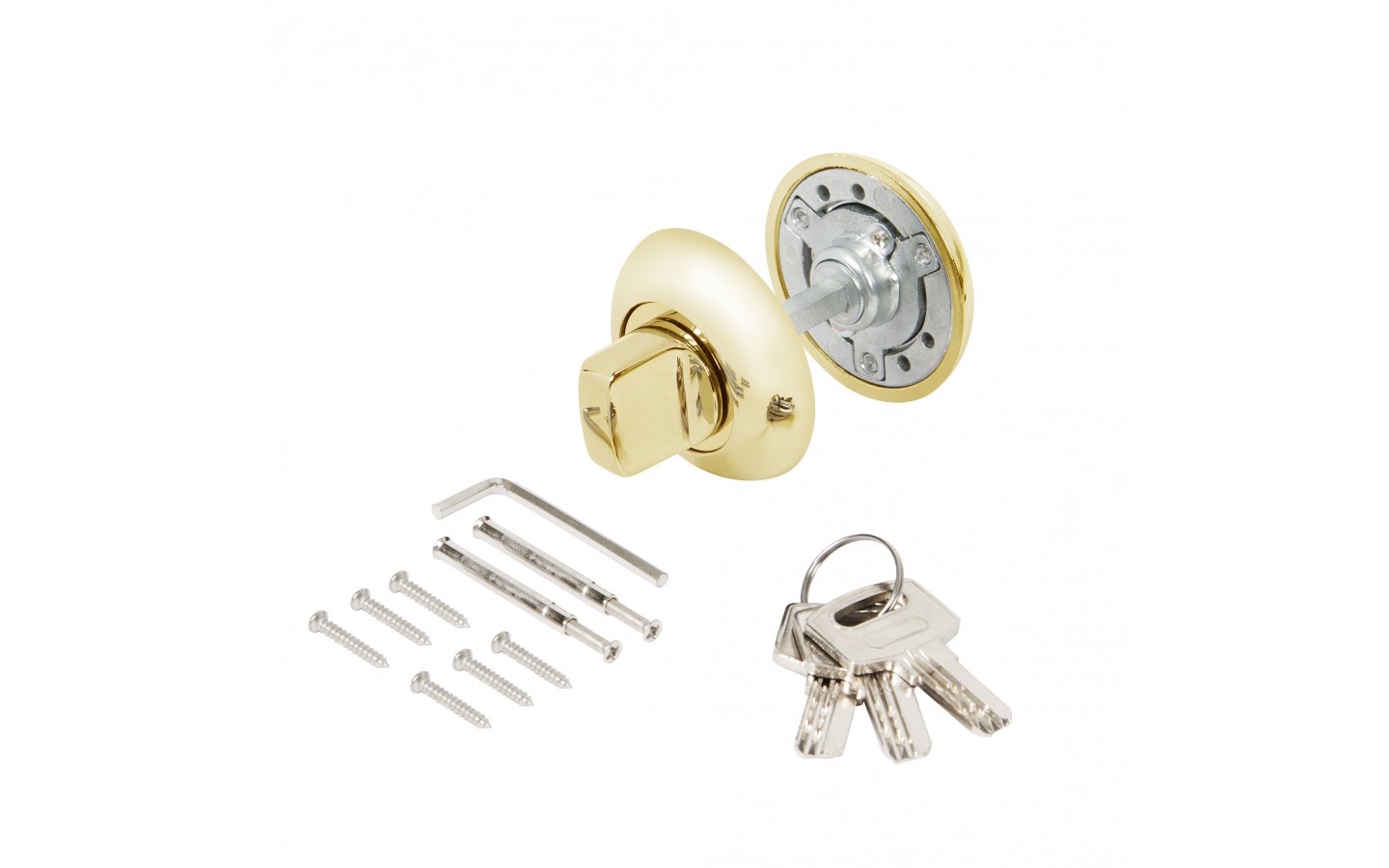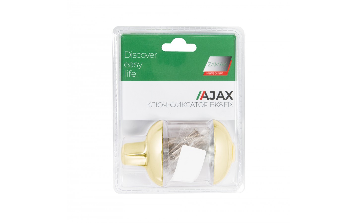 Ручка поворотная с фиксацией ключом Ajax BK6.FIX на квадратном основании серии JR предназначена для установки на межкомнатные двери. Используется вместе с задвижкой, защелкой для двухстороннего закрывания дверей. Запирание с внешней стороны производится на ключ, с внутренней - на поворотную ручку. Обратите внимание! При установке необходимо. чтобы квадрат поворотника был выставлен в среднее положение относительно цилиндрового механизма, то есть имел запас хода в обе стороны 90 градусов. Основной материал изготовления: замак. Материал изготовления цилиндрового механизма - латунь. Гальваническое покрытие прошло тест на устойчивость к коррозии в соляном тумане и соответствует 1 классу ГОСТ. Цвет: золото. В комплект входят: ручка-поворотная с соединительным квадратом 6x60 мм, цилиндр, 3 перфорированных ключа, комплект крепежа. Упаковка: блистер. Гарантия: 1 год.