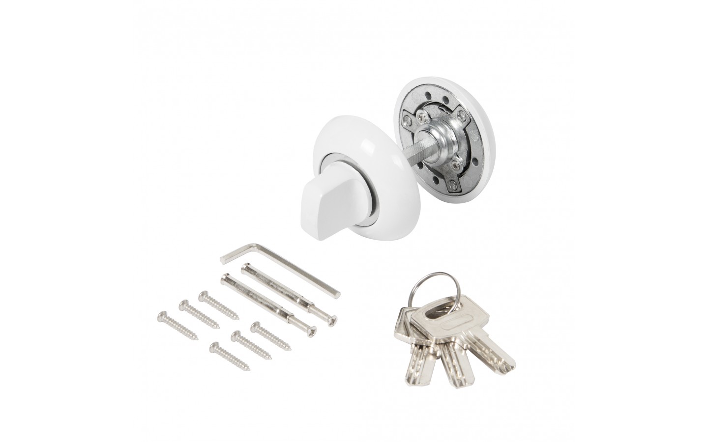 Ручка поворотная с фиксацией ключом Ajax BK6.FIX на квадратном основании серии JR предназначена для установки на межкомнатные двери. Используется вместе с задвижкой, защелкой для двухстороннего закрывания дверей. Запирание с внешней стороны производится на ключ, с внутренней - на поворотную ручку. Обратите внимание! При установке необходимо. чтобы квадрат поворотника был выставлен в среднее положение относительно цилиндрового механизма, то есть имел запас хода в обе стороны 90 градусов. Основной материал изготовления: замак. Материал изготовления цилиндрового механизма - латунь. Гальваническое покрытие прошло тест на устойчивость к коррозии в соляном тумане и соответствует 1 классу ГОСТ. Цвет: белый. В комплект входят: ручка-поворотная с соединительным квадратом 6x60 мм, цилиндр, 3 перфорированных ключа, комплект крепежа. Упаковка: блистер. Гарантия: 1 год.