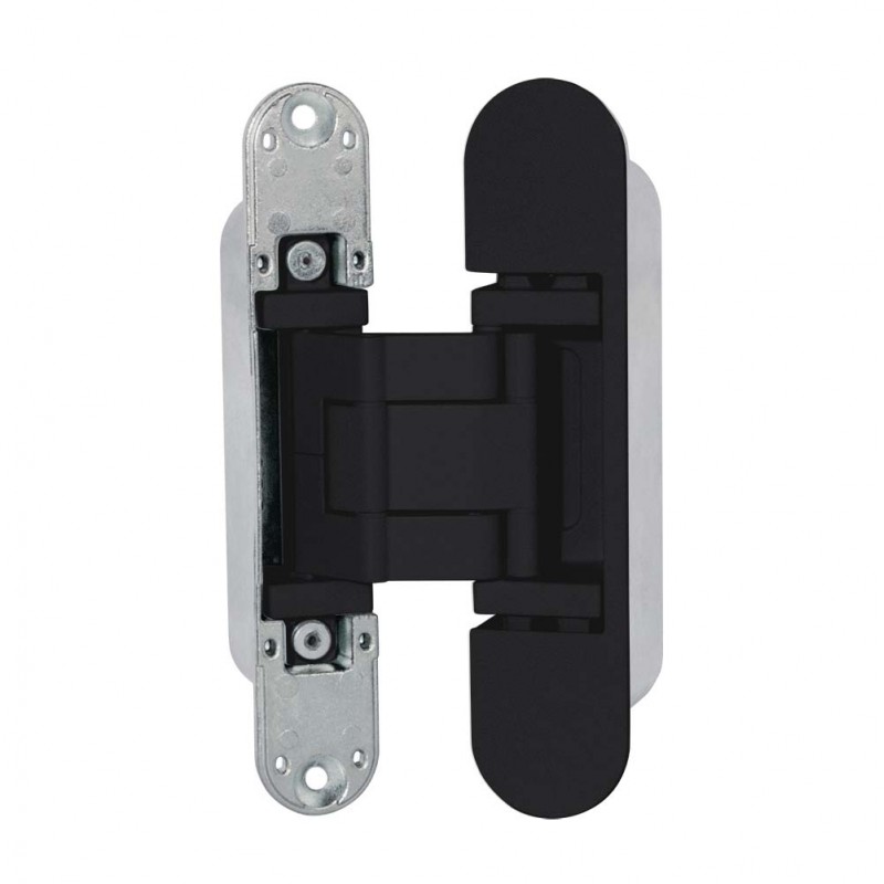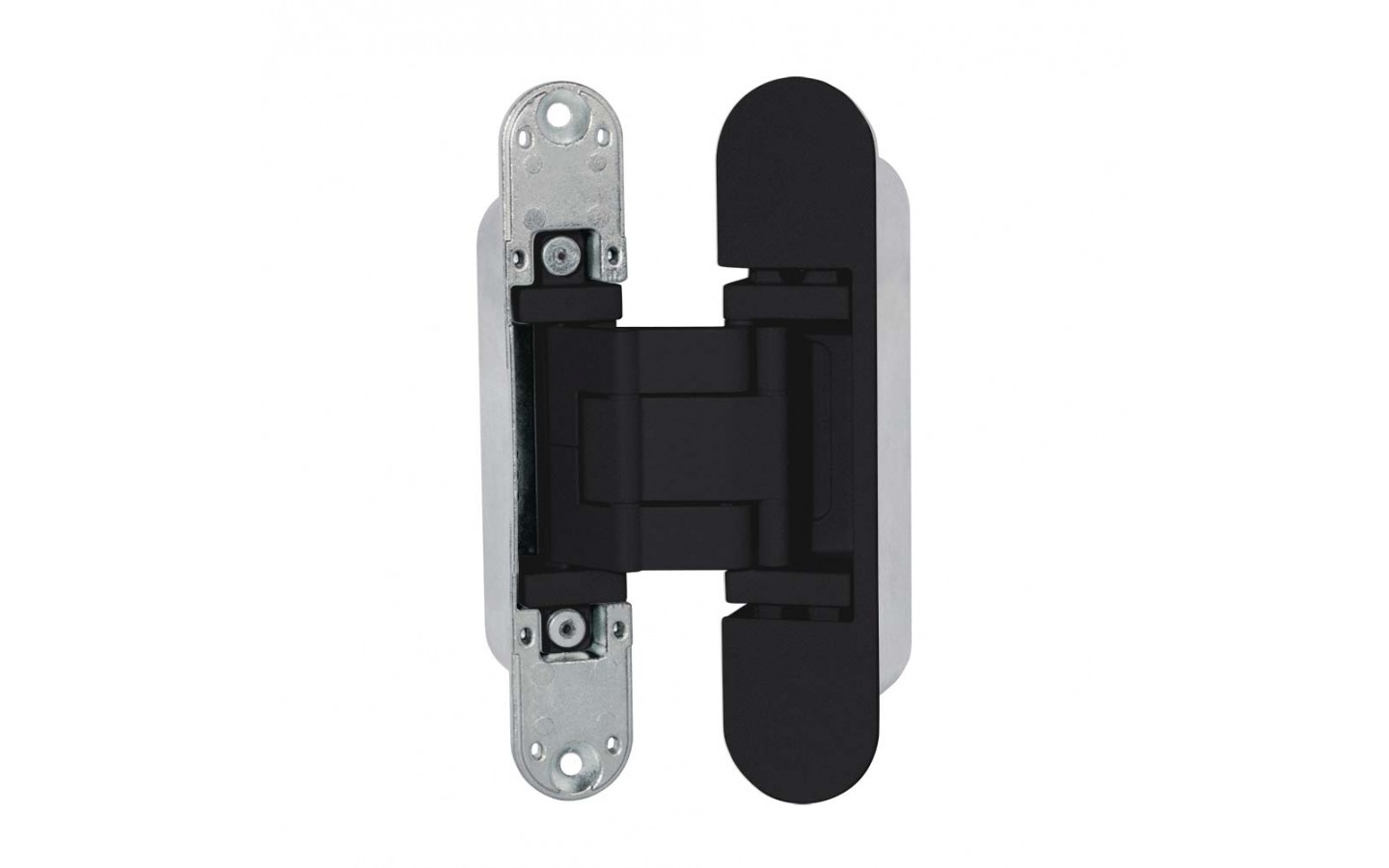Eclipse 4.1 - универсальная петля скрытой установки подходит для тяжелых межкомнатных дверей. Высокая несущая способность до 70 кг с двумя петлями. Петля находится в 5 мм от края створки для предотвращения деформации во время фрезеровки. Со стороны коробки, благодаря уменьшенным размерам фрезеровки, петля Eclipse 4.1 обеспечивает 13 мм толщины для наличника и возможность фрезеровки даже с уже установленным уплотнителем. Цвет: черный.