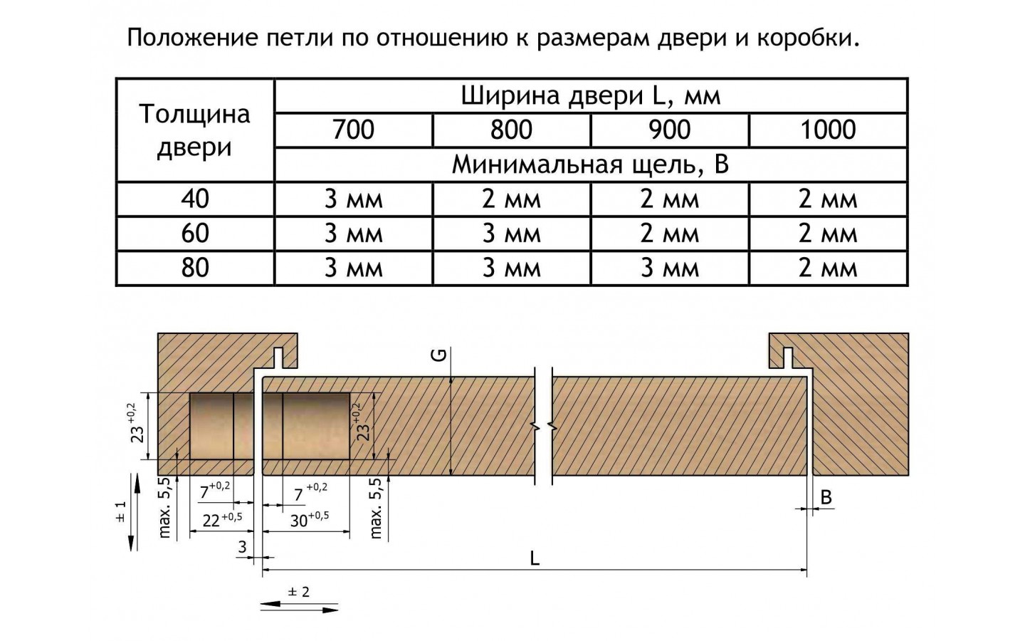 42 кг допустимая нагрузка на 2 петли дверью шириной 800 мм и высотой не менее 2000 мм при правильной регулировке (другие значения представлены в таблице)