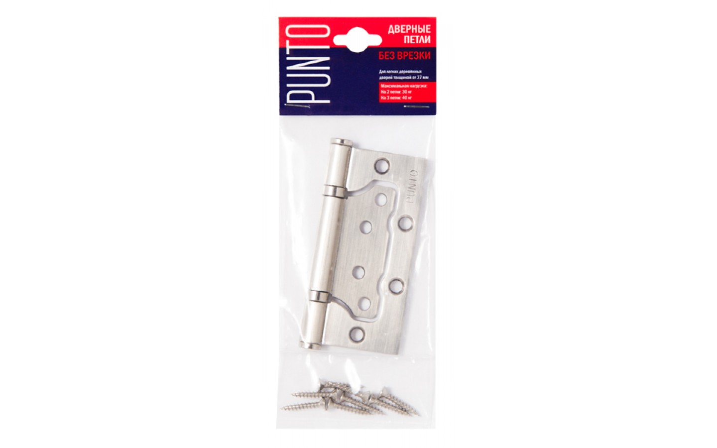 Универсальная дверная петля без врезки Punto 200-2B/HD изготовлена из стали, подходит для дверей левого и правого открывания. Гальваническое покрытие прошло тест на устойчивость к коррозии в соляном тумане и соответствует 1 классу ГОСТ. В петле установлены втулка-подшипники и стальной стержень, что обеспечивает работоспособность 200 000 циклов открывания/закрывания. Максимальная нагрузка на 2 петли 30 кг, на 3 петли 40 кг. Размер петли: 100x2,5. Цвет: кофе. Саморезы в цвет изделия в комплекте. Упаковка: подвес (пакет с картонкой).