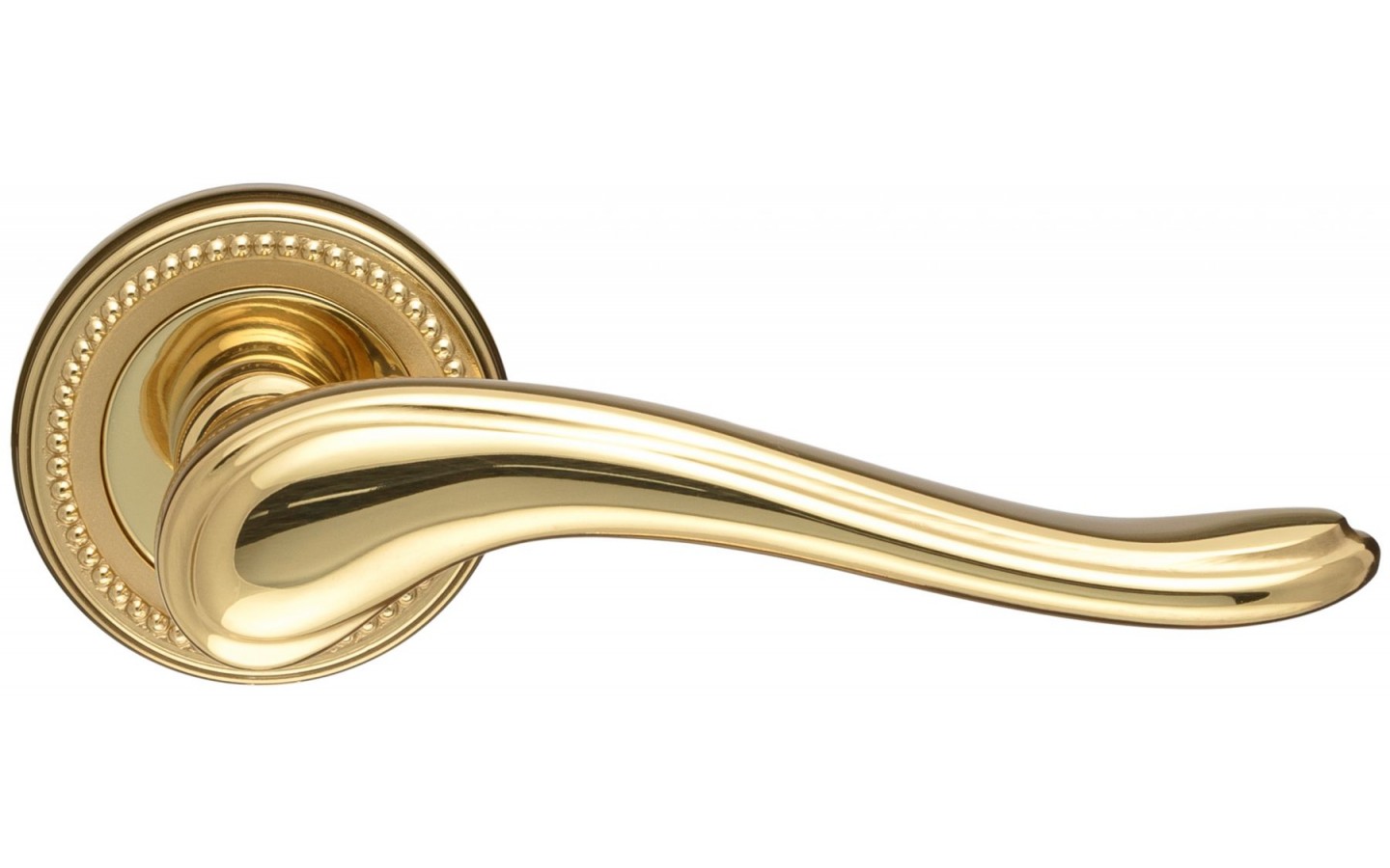 Дверные ручки ARIANA 333 на розетке изготовлены на одной из крупнейших фабрик – Extreza. Материал конструкции — Латунь высокого качества. Она не подвержена коррозионным процессам, выдерживает значительные нагрузки и многолетнюю эксплуатацию. Корпус покрыт несколькими слоями гальванического покрытия. Оно усиливает защиту от коррозии и придает дверной ручке привлекательный вид. Цвет покрытия Полированное золото