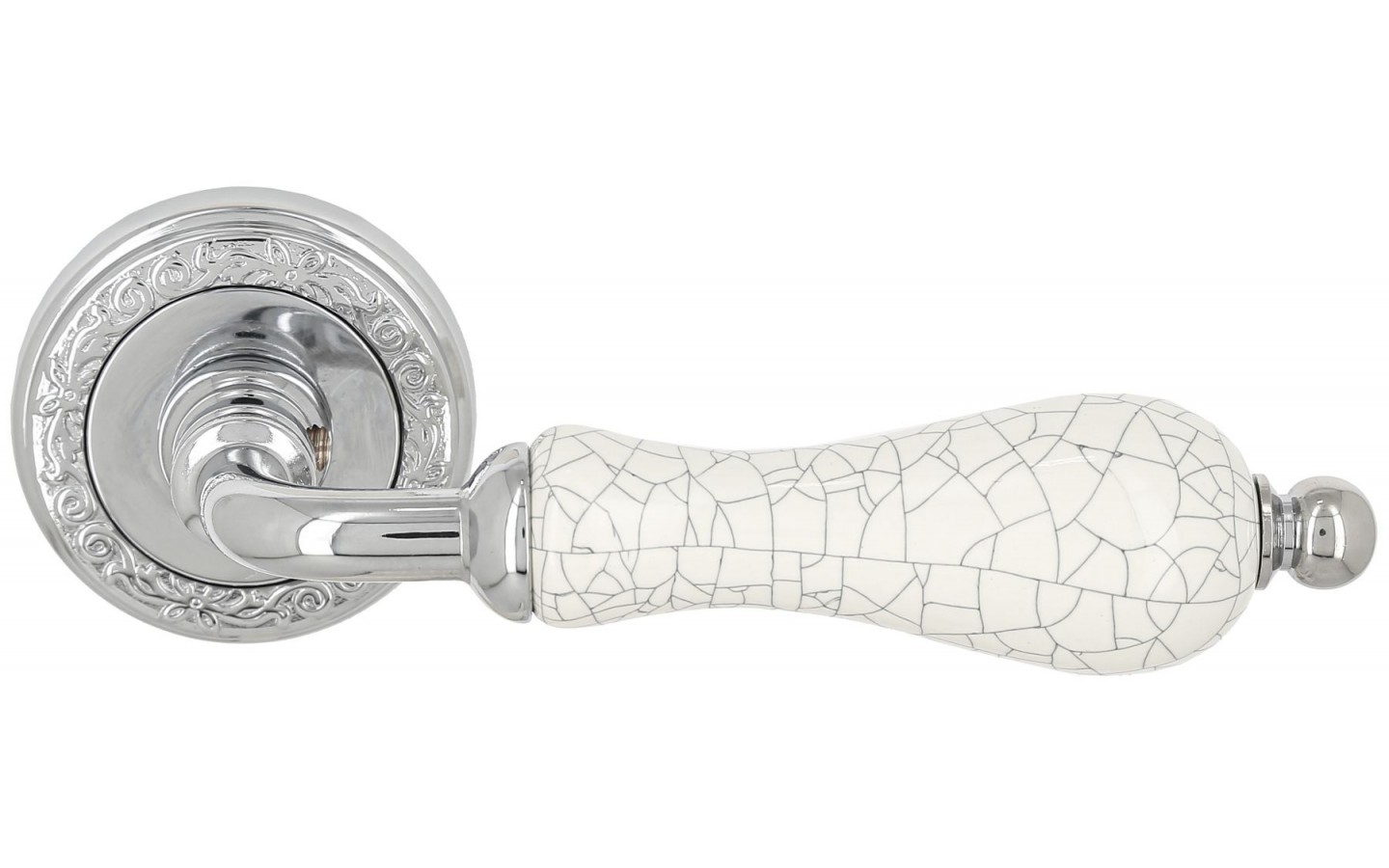Дверные ручки DANA CRACKLE 306 на розетке изготовлены на одной из крупнейших фабрик – Extreza. Материал конструкции — Латунь высокого качества. Она не подвержена коррозионным процессам, выдерживает значительные нагрузки и многолетнюю эксплуатацию. Корпус покрыт несколькими слоями гальванического покрытия. Оно усиливает защиту от коррозии и придает дверной ручке привлекательный вид. Цвет покрытия Полированный хром
