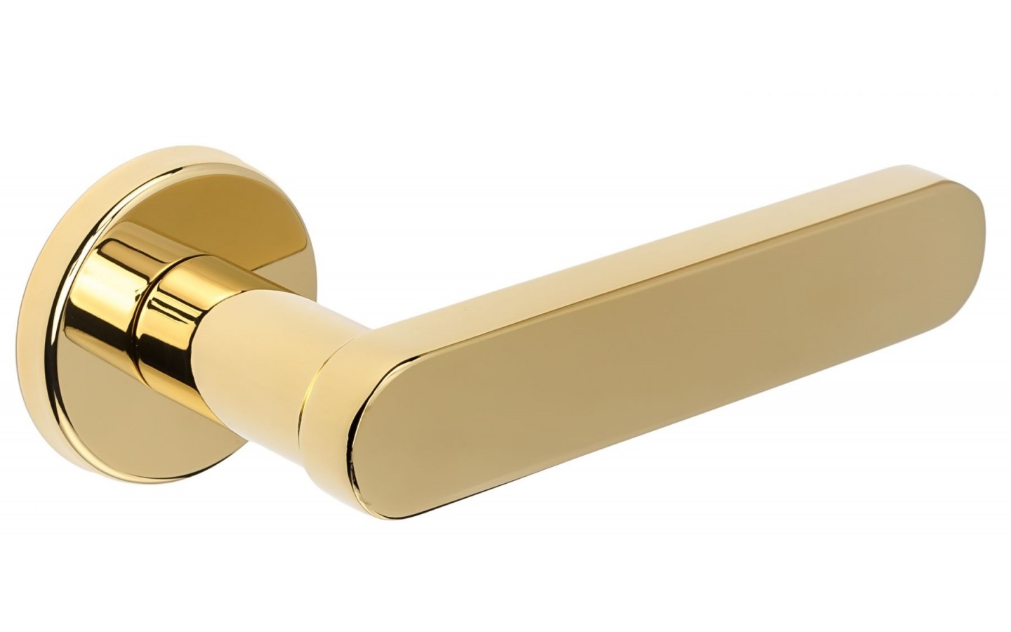 Дверные ручки JEMMA 116 на розетке изготовлены на одной из крупнейших фабрик – Extreza. Материал конструкции — Zamak (ЦАМ) высокого качества. Она не подвержена коррозионным процессам, выдерживает значительные нагрузки и многолетнюю эксплуатацию. Корпус покрыт несколькими слоями гальванического покрытия. Оно усиливает защиту от коррозии и придает дверной ручке привлекательный вид. Цвет покрытия Полированное золото