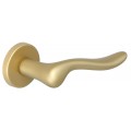 Дверные ручки TOLEDO 323 на розетке изготовлены на одной из крупнейших фабрик – Extreza. Материал конструкции — Латунь высокого качества. Она не подвержена коррозионным процессам, выдерживает значительные нагрузки и многолетнюю эксплуатацию. Корпус покрыт несколькими слоями гальванического покрытия. Оно усиливает защиту от коррозии и придает дверной ручке привлекательный вид. Цвет покрытия Матовое золото