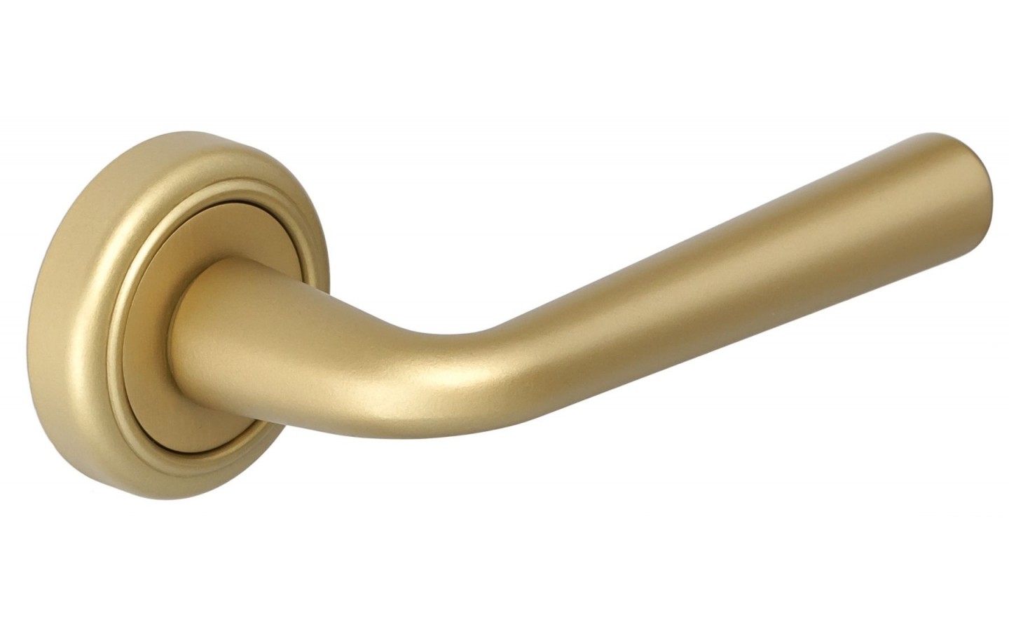 Дверные ручки SANDRO 332 на розетке изготовлены на одной из крупнейших фабрик – Extreza. Материал конструкции — Латунь высокого качества. Она не подвержена коррозионным процессам, выдерживает значительные нагрузки и многолетнюю эксплуатацию. Корпус покрыт несколькими слоями гальванического покрытия. Оно усиливает защиту от коррозии и придает дверной ручке привлекательный вид. Цвет покрытия Матовое золото