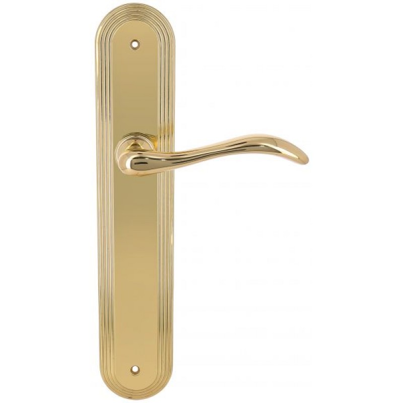 Дверная ручка Extreza AGATA (Агата) 310 на планке PL05 полированная латунь F01 без доп. запирания PASS