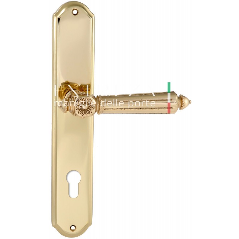 Дверная ручка Extreza LEON (Леон) 303 на планке PL01 CYL полированная латунь F01