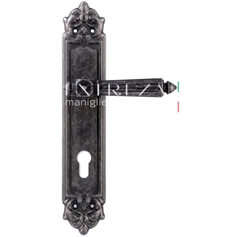 Дверная ручка Extreza LEON (Леон) 303 на планке PL02 CYL античное серебро F45