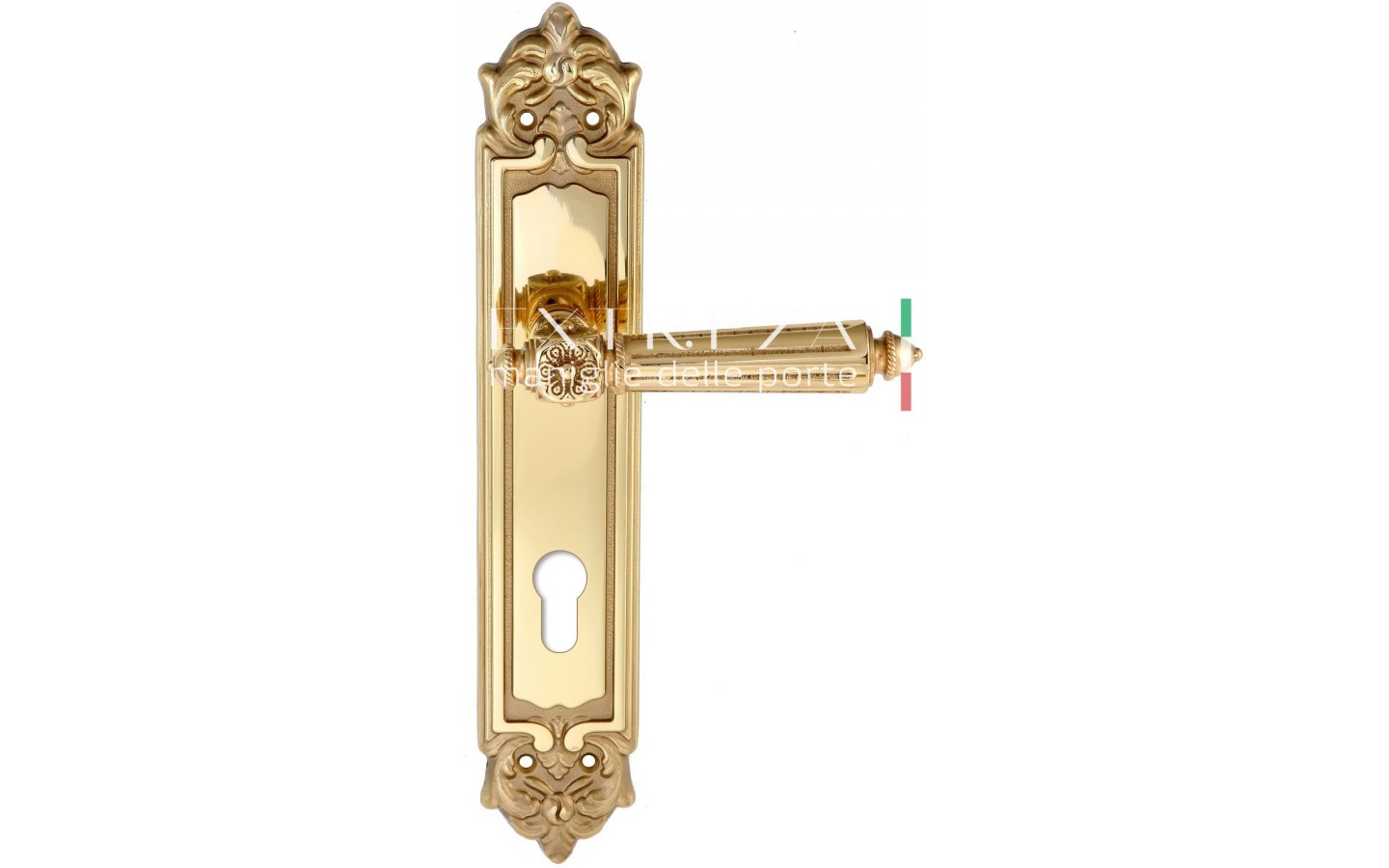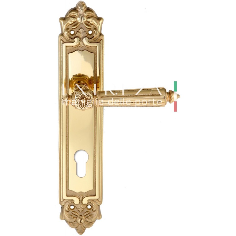 Дверная ручка Extreza LEON (Леон) 303 на планке PL02 CYL полированная латунь F01