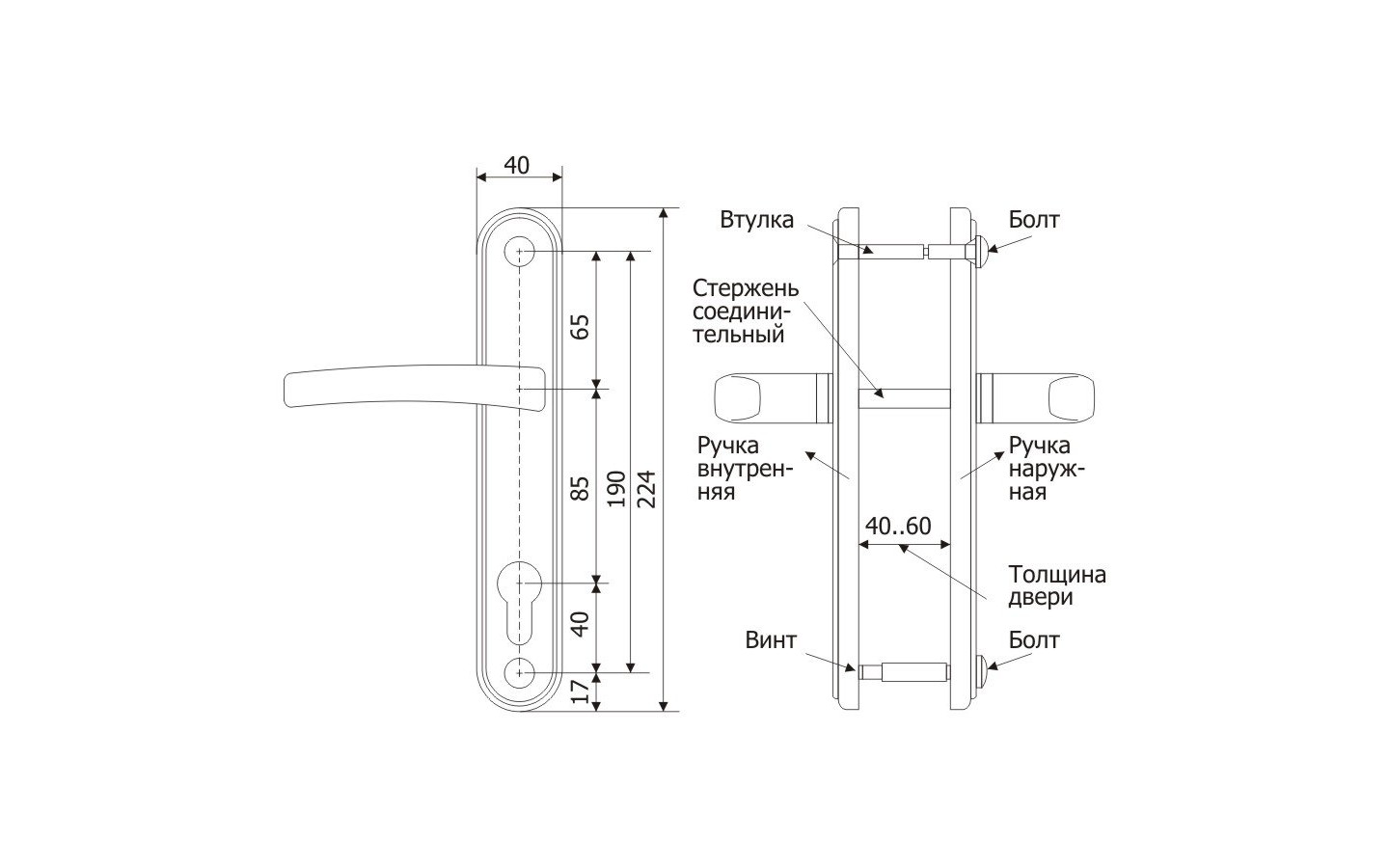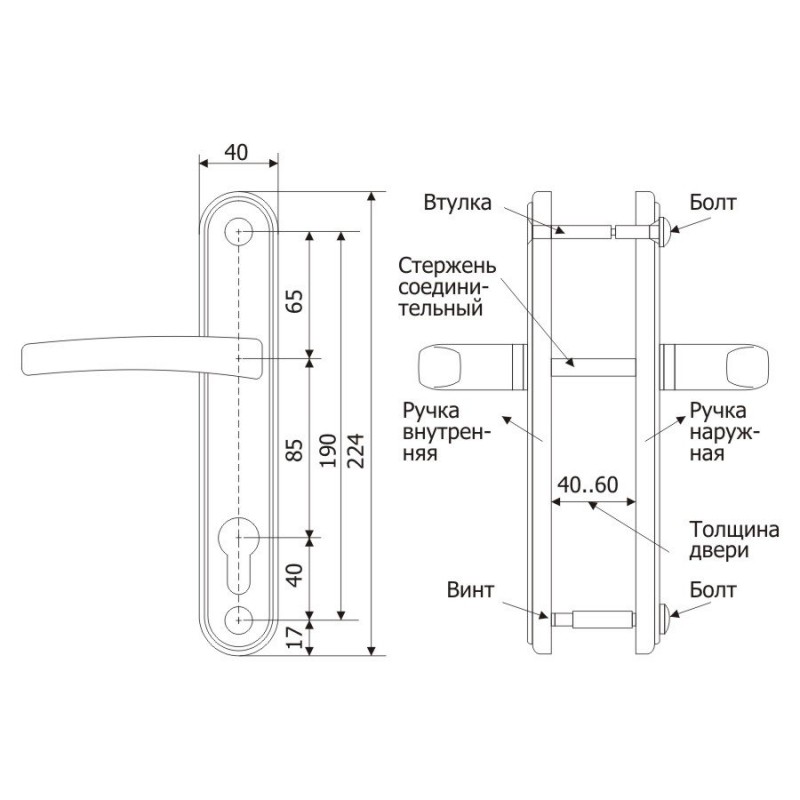 | Толщина двери | Для любой толщины дверей |