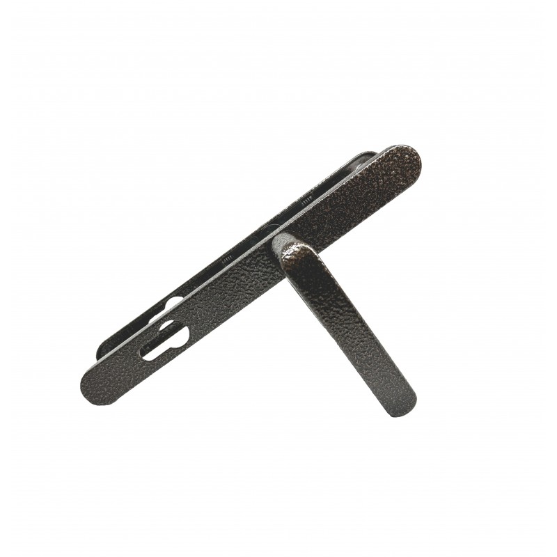 Ручки на планке с подпружиненным механизмом и межосевым расстоянием 85 мм. Рекомендованы для комплектации узкопрофильных замков с межосевым расстоянием 85 мм. Тип краски и цвет ручек специально подобраны для установки в уличные калитки. Ширина планки 26 м.