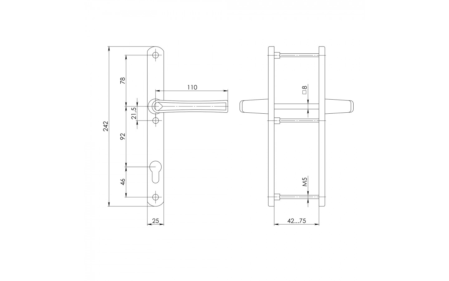 - Толщина двери:от 42 мм до 75 мм