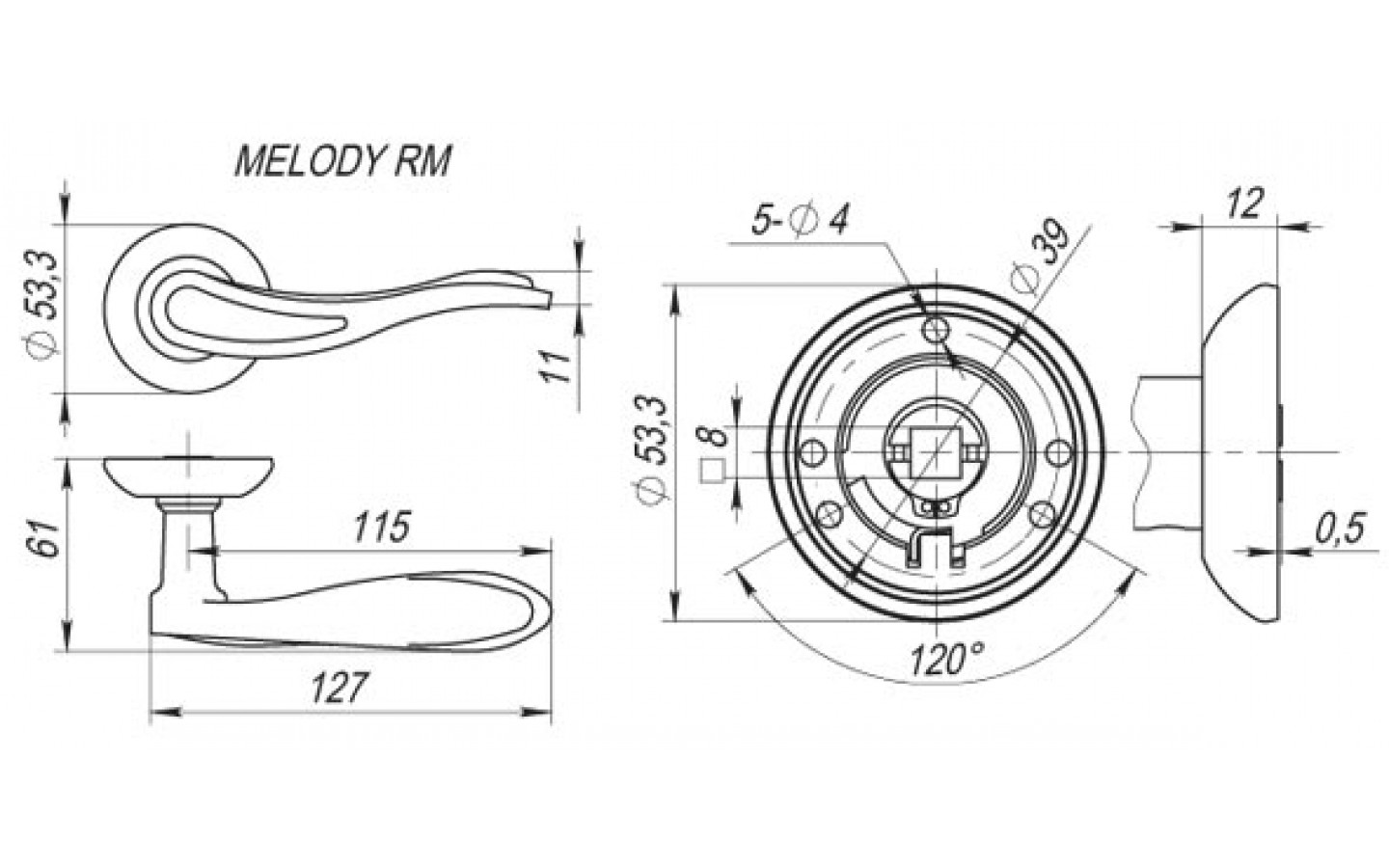Ручка Fuaro (Фуаро) раздельная MELODY RM AB/GP-7