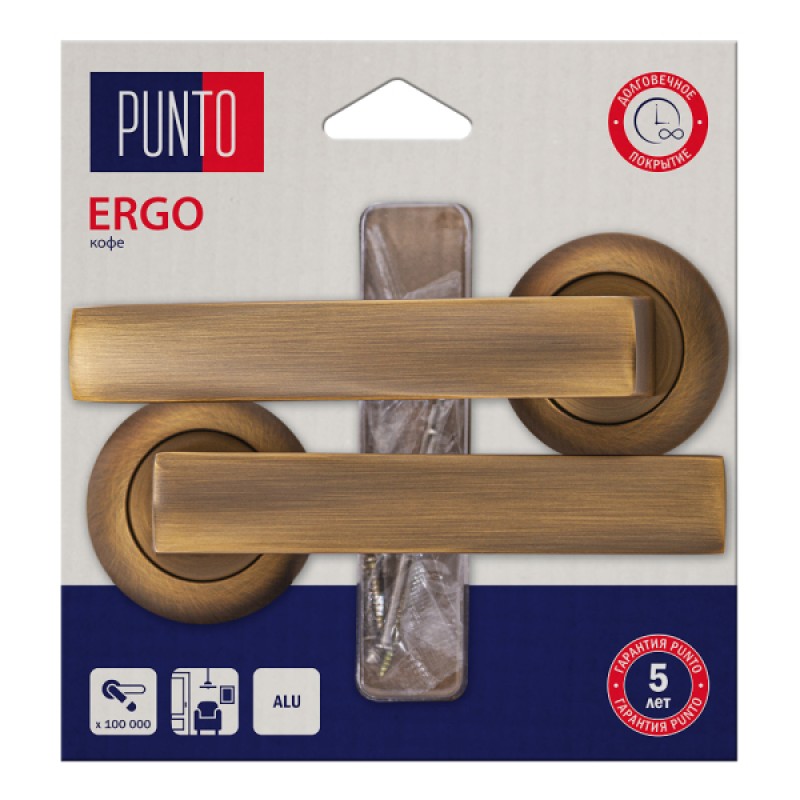 Дверные ручки Punto ERGO серии TL из коллекции SIMPLE LIVING предназначены для установки в межкомнатные и внутренние входные двери. Гальваническое покрытие прошло тест на устойчивость к коррозии в соляном тумане и соответствует 1 классу ГОСТ. Ресурс работы дверных ручек более 150 000 циклов открывания/закрывания. Материал - алюминий. Комплектация: комплект крепежной фурнитуры, соединительный квадрат 8x105 мм.
