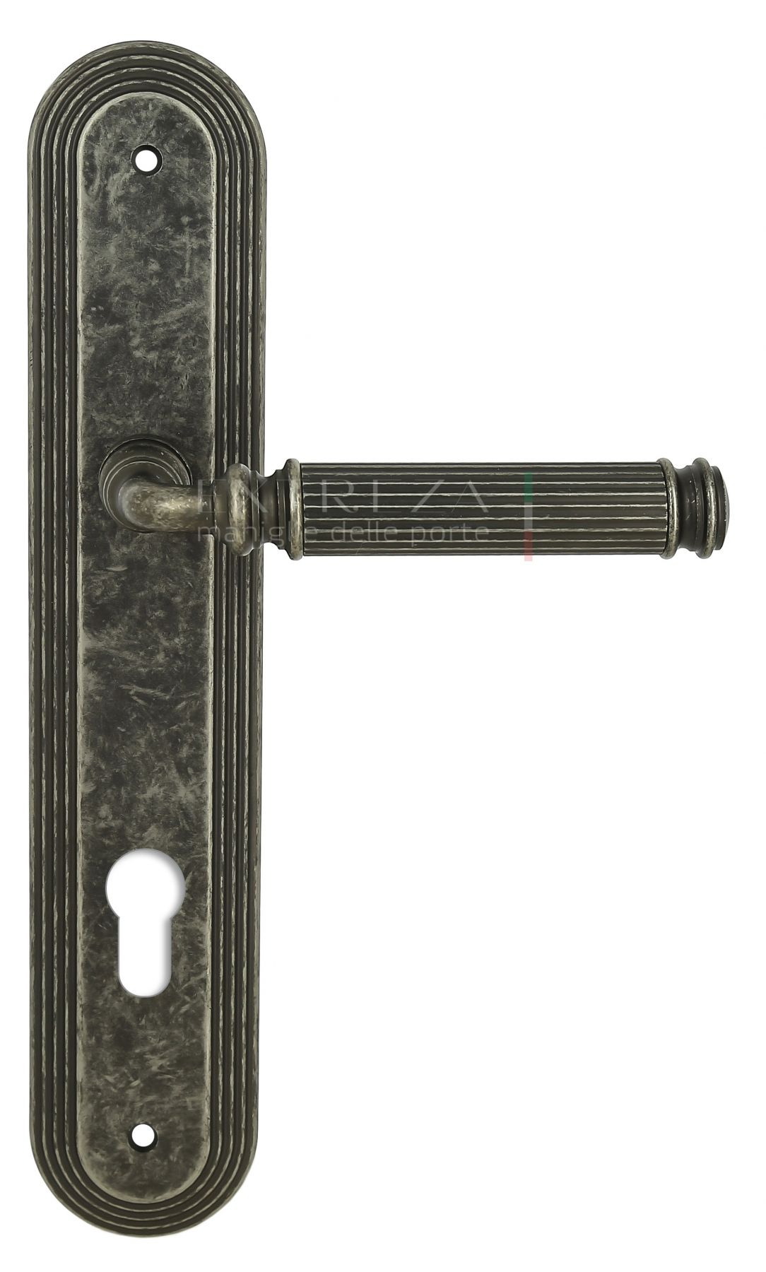 Дверная ручка BENITO (Бенито) 307 на планке PL05 античное серебро F45 под цилиндровый механизм CYL