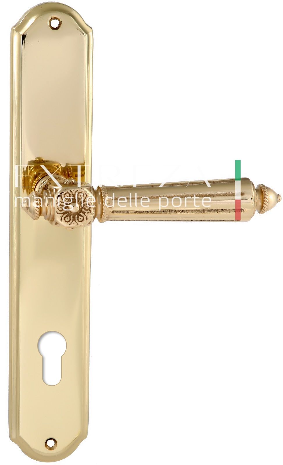 Дверная ручка Extreza LEON (Леон) 303 на планке PL03 CYL полированная латунь F01 При контакте с ф...