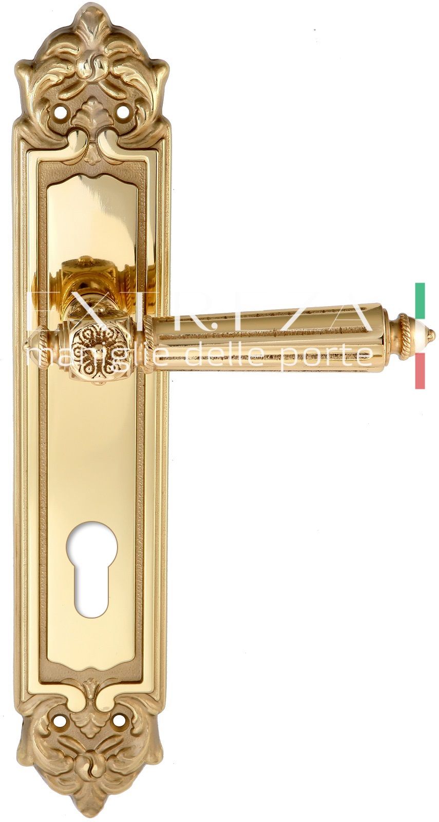 Дверная ручка Extreza LEON (Леон) 303 на планке PL02 CYL полированная латунь F01 При контакте с ф...