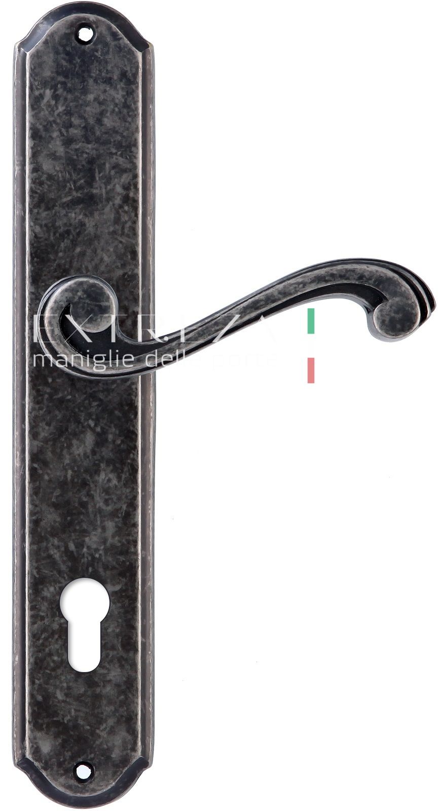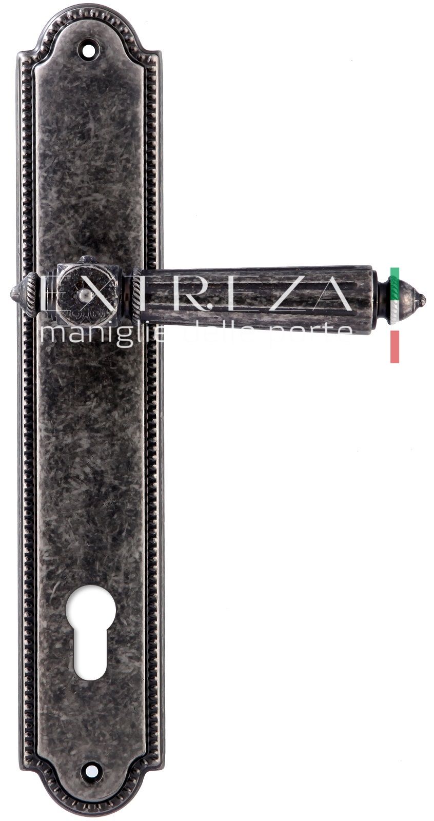 Дверная ручка Extreza LEON (Леон) 303 на планке PL01 CYL античное серебро F45 При контакте с фурн...