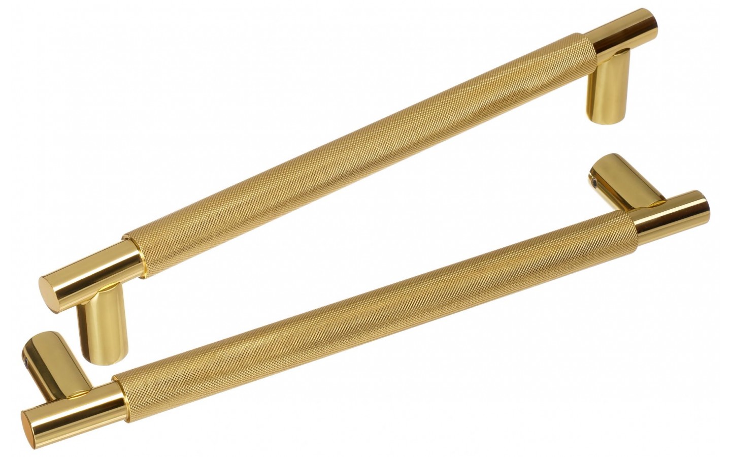 Ручка дверная скоба Extreza Hi-Tech "TUBA" (Туба) 126 (высота 350 мм, межос. 300 мм) полированная латунь F01