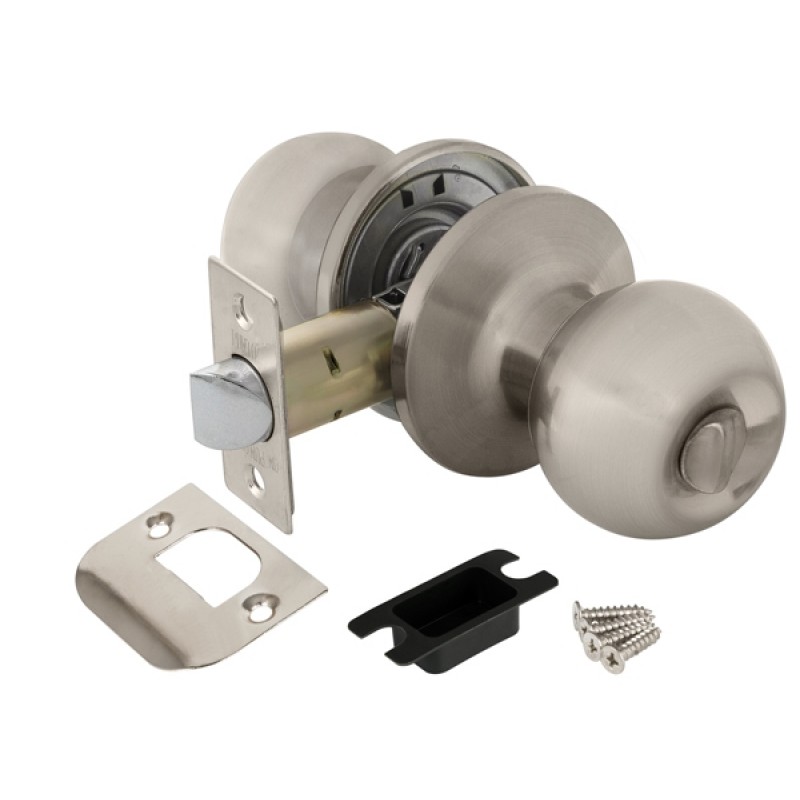Комплект дверных ручек с защелкой (KNOB) Punto коллекции SIMPLE LIVING 6072 SN-B предназначен для установки в межкомнатные двери толщиной 35-45 мм. Подходит для дверей правого и левого открывания. Гальваническое покрытие прошло тест на устойчивость к коррозии в соляном тумане и соответствует 1 классу ГОСТ. Ресурс работы ручек-защелок более 150 000 циклов открывания/закрывания, что гарантирует безотказную работу двери более чем на 15 лет. Бэксет защелки регулируется - 60/70 мм. Материал изготовления: сталь. Модификация: фиксатор. Цвет: матовый никель. Комплектация: защелка, ответная планка с декоративной заглушкой, дверные ручки, крепежная фурнитура, шаблон и инструкция по установке.
