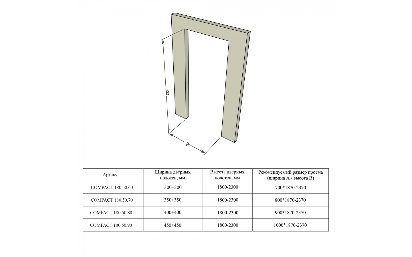 Складная система COMPACT — новое стильное решение для интерьеров с элегантным и лаконичным дизайном. Предназначена для левого, правого и двухдверного открывания. Поворотно-складной механизм размещает двери вдоль стен, создавая угол открывания 180°, что позволяет экономить пространство даже в небольших помещениях. Бесшумное и плавное открывание дает возможность устанавливать двери в гардеробных и детских комнатах. А за счет отсутствия направляющих создается впечатление, что двери парят в воздухе. Складная система COMPACT дает возможность установки в стандартную коробку и полотна стандартных размеров весом до 50 кг, толщиной от 36 до 44 мм. 180- угол открывания системы, 50- вес дверного полотна, 60/70/80/90 - ширина дверного полотна, L/R- левое и правое открывания