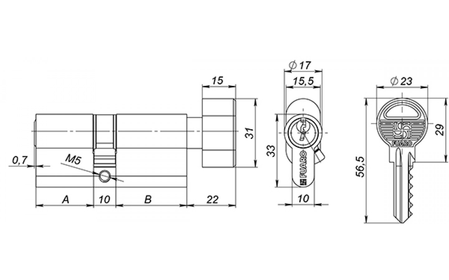 Цилиндровый механизм Fuaro 100 ZM предназначен для установки в корпуса врезных цилиндровых замков для всех типов дверей. Вариант исполнения: ключ-вертушка. Тип ключа: "английский". Материал изготовления цилиндра: ZAMAK. Количество пинов: 6. Секретность более 5 000 комбинаций. Работоспособность более 100 000 циклов. Размер: 60 мм. Цвет: хром. Комплектация: 5 стальных ключей, крепежный винт 50 мм.