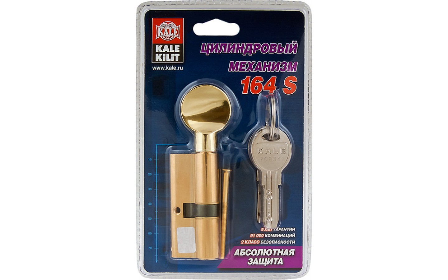 Цилиндровый механизм Kale kilit (Кале килит) с вертушкой 164 SM/70 (30+10+30) mm упк.БЛИСТЕР латунь 5 кл.