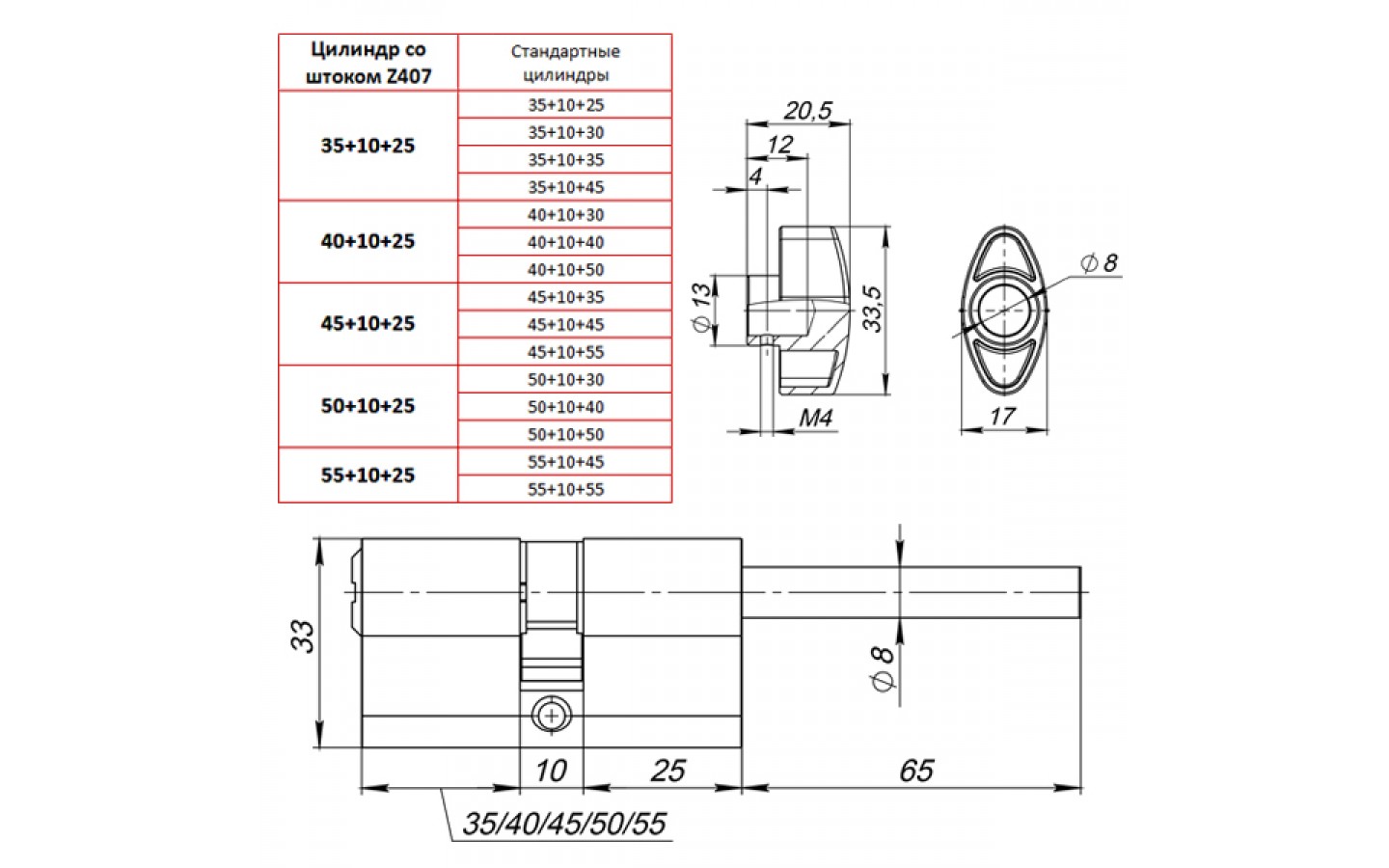 | Тип цилиндра | Ключ-шток с вертушкой |