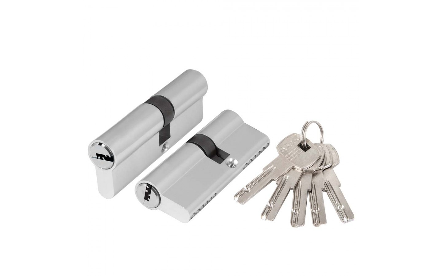 Цилиндровые механизмы Ajax серии AZ200/202 предназначены для установки в корпуса врезных цилиндровых замков для всех типов дверей. Вариант исполнения: ключ-ключ, ключ-вертушка. Тип ключа: “перфорированный”. Материал изготовления цилиндра: цинковый сплав. Материал изготовления ротора: цинковый сплав. Количество пинов: 6. Работоспособность: более 90 000 циклов открывания/закрывания. Секретность: более 1 000 комбинаций. Комплектация: 5 стальных ключей, крепежный винт 70 мм. Упаковка: картон. Гарантия: 1 год.