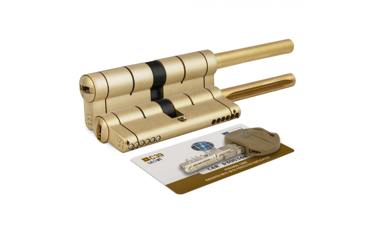 Цилиндровый механизм под вертушку с длинным штоком C39P513101LC5 серии CHAMPIONS 39 имеет запатентованный магнитный пин. Штифты, пины и заглушки выполнены из твердых материалов, благодаря чему корпус и ротор имеют защиту от высверливания. Штифты имеют специальную форму, обеспечивающую защиту от отмычек. Боковые и верхние пины блокируют цилиндр в случае попытки вскрытия методом бампинга или отмычками. Ключи с цилиндрами CHAMPIONS 39 поставляются с зарегистрированной карточкой владельца. Изготовление дубликатов ключей возможно только при предъявлении карты владельца. Размер цилиндра: 82 мм (46+10+26). Цвет: латунь.