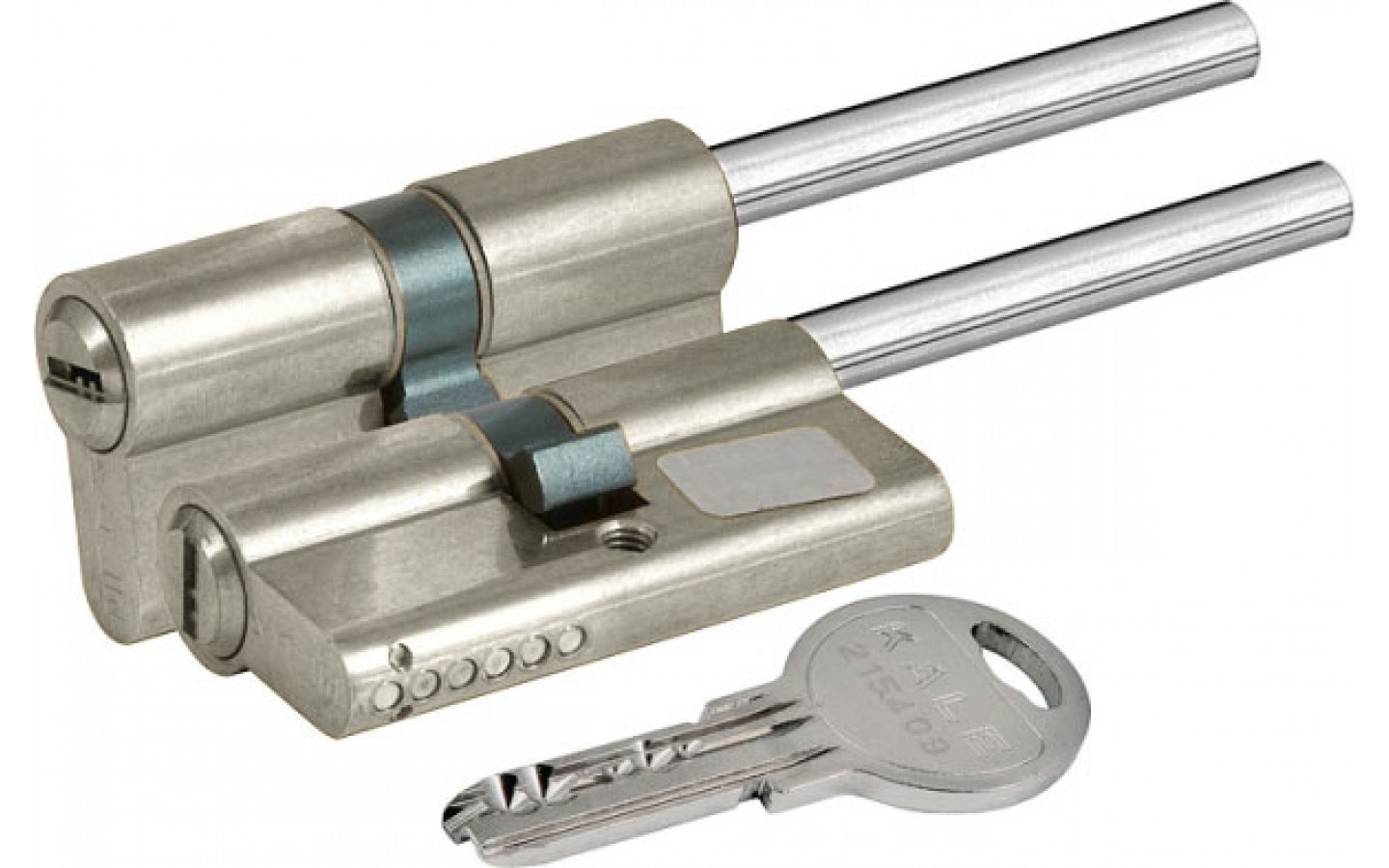 Цилиндровый механизм под вертушку с длинным штоком серии 164 SX имеет 2 класс безопасности. 6 латунных комбинативных пинов обеспечивают 91 000 комбинаций. Секретные пины грибовидной формы позволяют противостоять открытию методом подбора секретного кода. Защитные стержни выполнены из высокопрочной стали, защищающей механизм от разрушения методом высверливания. Тип ключа: перфорированный. Исполнение: ключ-шток. Комплектация: 5 латунных ключей, крепежная фурнитура. Размер: 76 (40+10+26) мм. Цвет: никель.