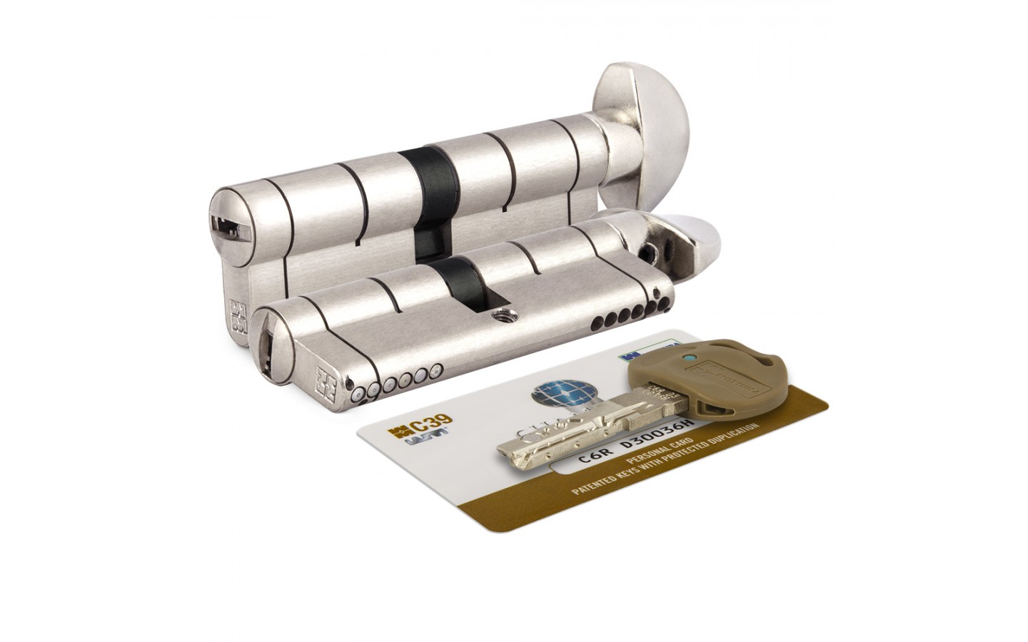 Цилиндровый механизм с вертушкой C39F364601RC5 серии CHAMPIONS 39 имеет запатентованный магнитный пин. Штифты, пины и заглушки выполнены из твердых материалов, благодаря чему корпус и ротор имеют защиту от высверливания. Штифты имеют специальную форму, обеспечивающую защиту от отмычек. Боковые и верхние пины блокируют цилиндр в случае попытки вскрытия методом бампинга или отмычками. Ключи с цилиндрами CHAMPIONS 39 поставляются с зарегистрированной карточкой владельца. Изготовление дубликатов ключей возможно только при предъявлении карты владельца. Размер цилиндра: 82 мм (31+10+41). Цвет: матовый никель.