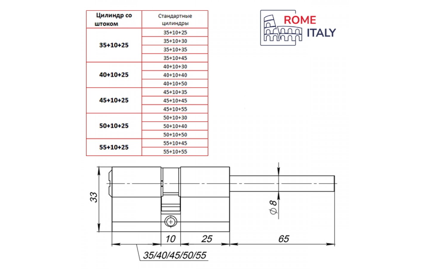 Цилиндровый механизм Punto коллекции ROME предназначен для установки в корпус врезных цилиндровых замков для всех типов дверей. Наличие проточек на штифтах данного цилиндра препятствует вскрытию замка отмычками. Вариант исполнения: ключ-шток. Вертушка в комплект не входит и приобретается отдельно. Тип ключа: "перфорированный". Материал ключа: сталь. Материал цилиндра: цинк. Материал ротора: цинк. Количество пинов: 6. Секретность: более 5 000 комбинаций. Работоспособность: более 200 000 циклов открывания/закрывания. Размер штока: 65 мм. Цвет: хром. Комплектация: 5 ключей, крепёжный винт. Упаковка: картонная коробка.