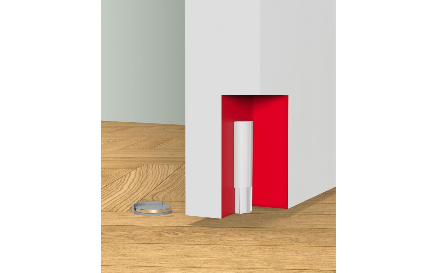 Монтаж без сверления не только удобный, но и предотвращает порчу пола. Благодаря особой форме монтажной панели дверное полотно гарантированно фиксируется стопором.