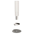 Комплектация стопора содержит монтажную панель с редкоземельными неодимовым магнитом и фиксатор в полимерном корпусе с металлическим штифтом. Фиксатор врезается в торец дверного полотна, а монтажная панель с магнитом крепится на пол с помощью клейкой ленты ЗМ для особо прочной фиксации.