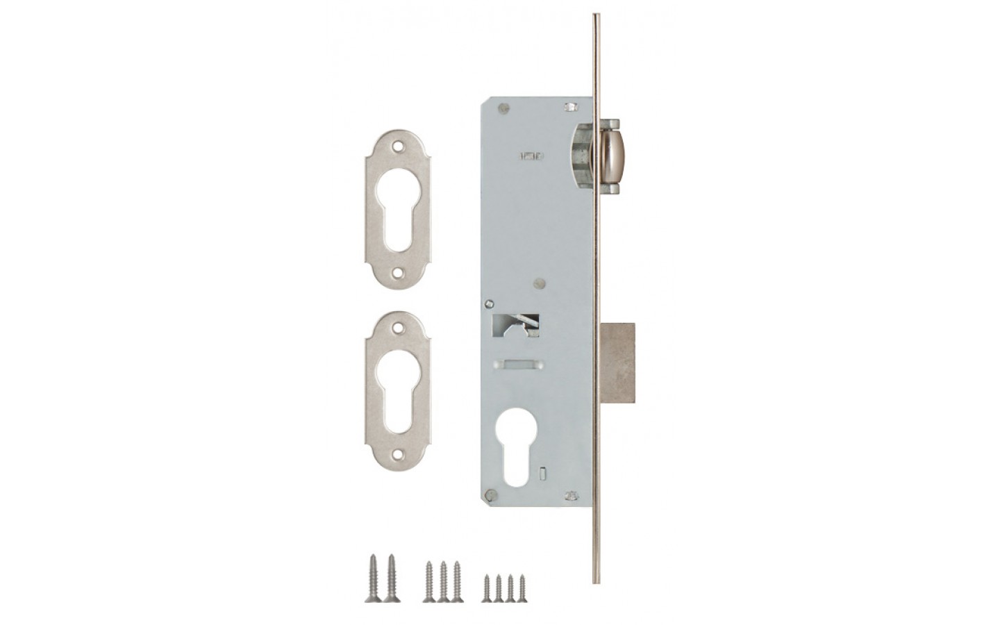 Корпус замка врезного цилиндрового 155/P с роликовой защелкой предназначен для узкопрофильных дверей. Корпус выполнен из оцинкованной стали, ригель из хромированного цинкового сплава, роликовая защелка из хромированной латуни. Ширина планки - 16 мм. Бэксет - 35 мм. Цвет: никель. Цилиндр и ответная планка в комплект не входят.