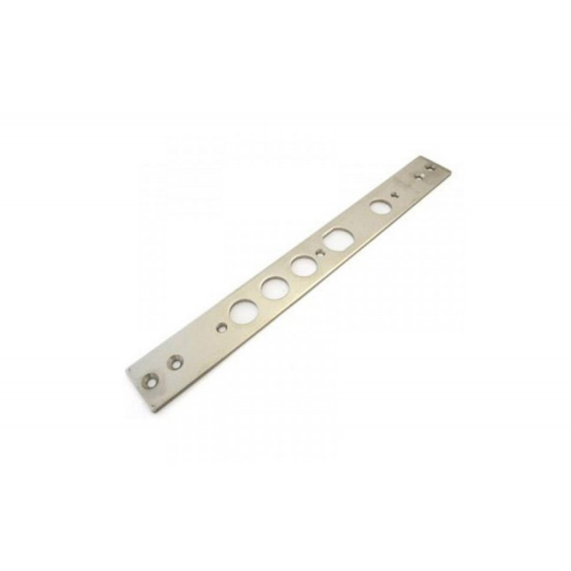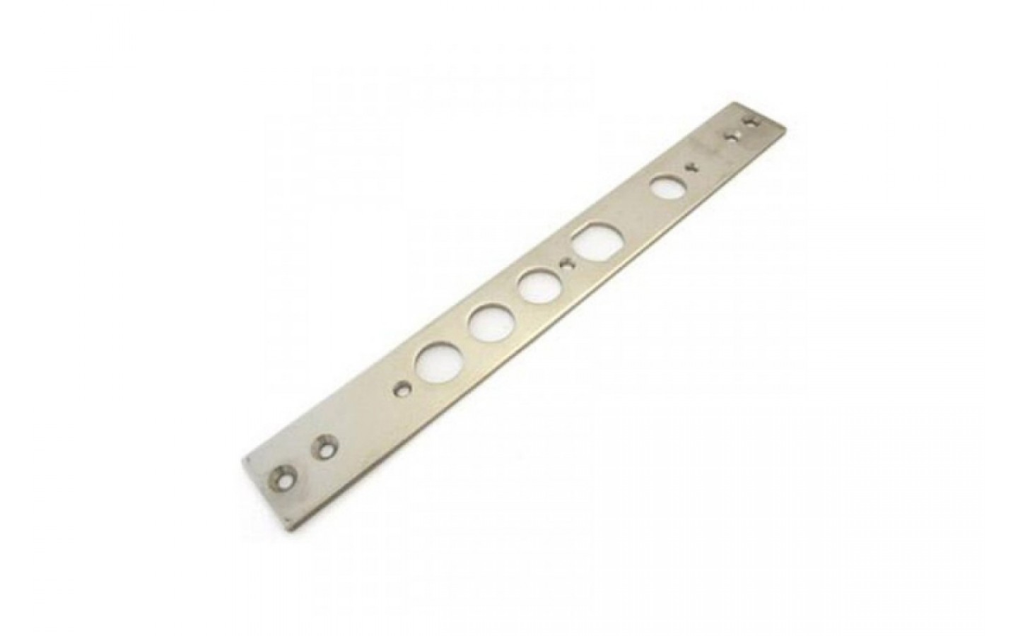 Ответная планка для замка серии 30.12 с отверстиями под ригели, защелку и задвижку. Цвет: никель.