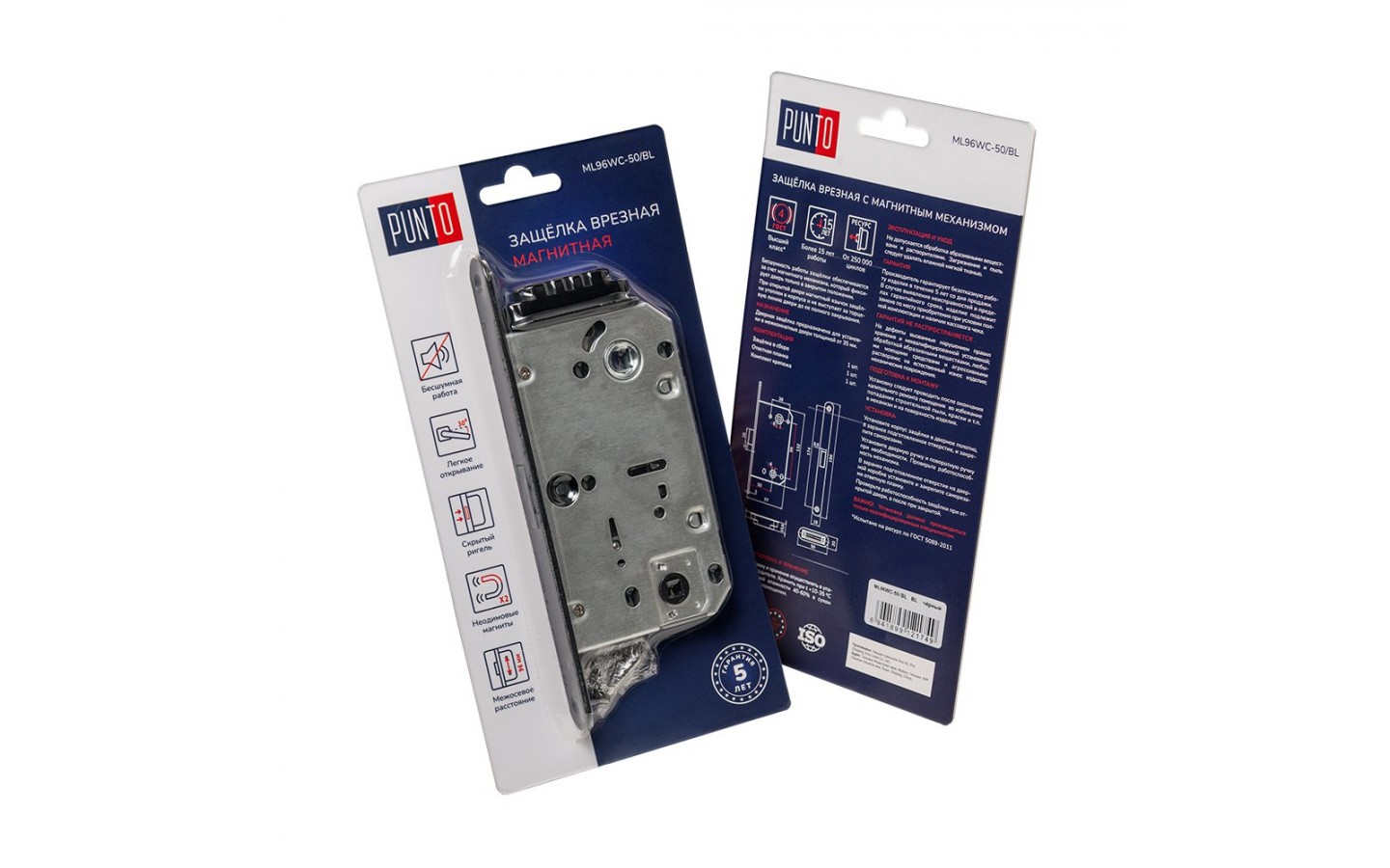Дверная магнитная защелка Punto серии ML96WC-50/BL предназначена для установки в деревянные межкомнатные и сантехнические двери, подходит для дверей левого и правого открывания. Корпус выполнен из стали. Бесшумность работы обеспечивается за счет магнитного механизма, который фиксирует дверь только в закрытом положении. Защелка прошла испытания и имеет высший 4 класс надежности (250 000 циклов открывания/закрывания), что позволяет рекомендовать их для установки на двери помещений с большой проходимостью. Упаковка : блистер.