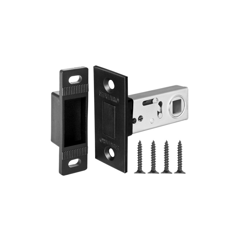 Дверная магнитная защелка Fuaro M12 серии MAGNET изготовлена в соответствии с требованиями ГОСТ 5089-2003. Предназначена для установки в деревянные межкомнатные двери. Корпус выполнен из стали с надежным гальваническим покрытием. Защелка легко устанавливается, подходит для дверей левого и правого открывания. Магнитный механизм обеспечивает бесшумность работы защелки. Защелка M12 с усиленной пружиной имеет высший 4 класс надежности (250 000 циклов открывания/закрывания). Отверстия под стяжные винты находятся на расстоянии 38 мм. Размер бэксета - 50 мм. Регулируемая ответная планка с магнитной вставкой ±1,5 мм. Возможна установка дверных ручек на стяжные винты для более прочного крепления. Цвет: черный. В комплектацию входят: ответная планка с магнитной вставкой и крепежная фурнитура в цвет изделия.