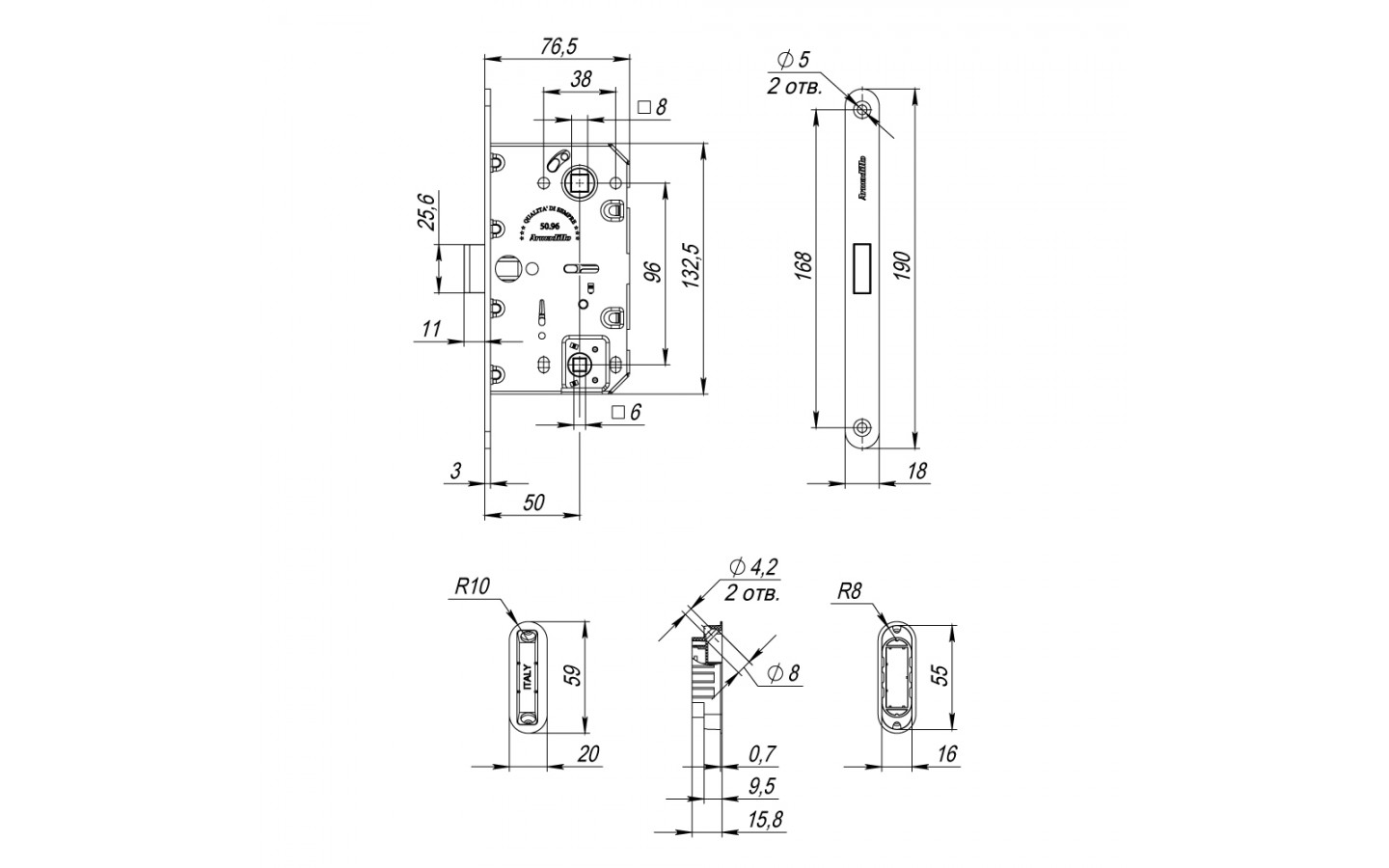 - Бэксет (удаление ключевого отверстия):50 мм